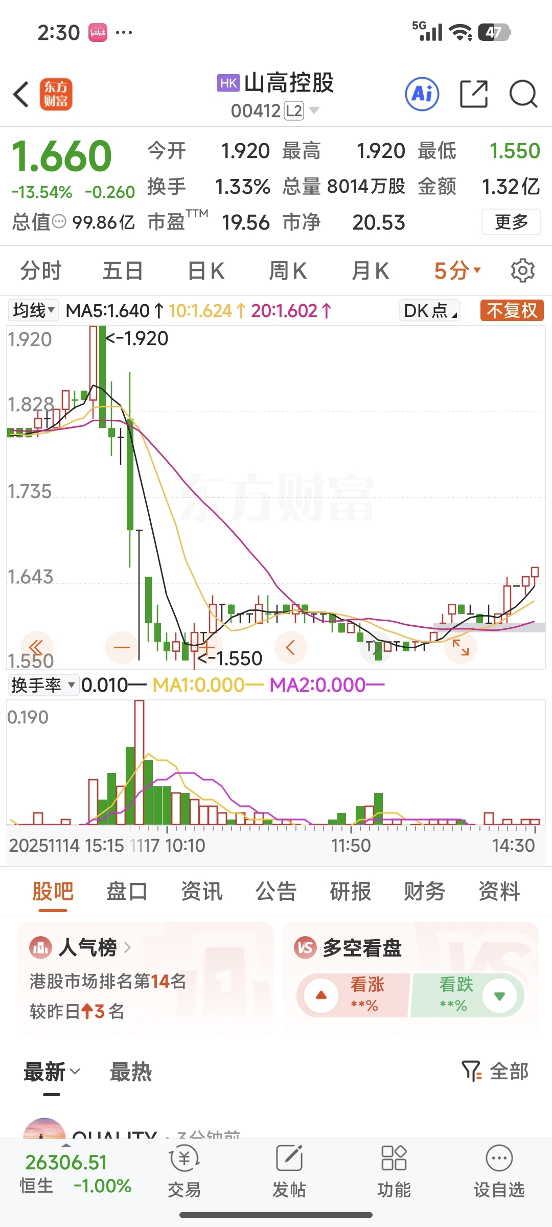 $山高控股(HK|00412)$ 下午没啥成交量了