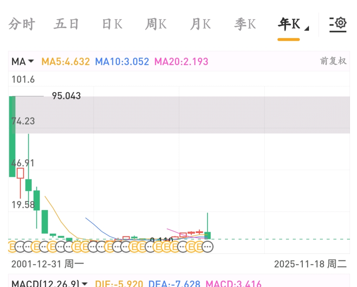 大家看看它年K走势,长年趴着的股。这波跌下来复制这玩法没人受得了