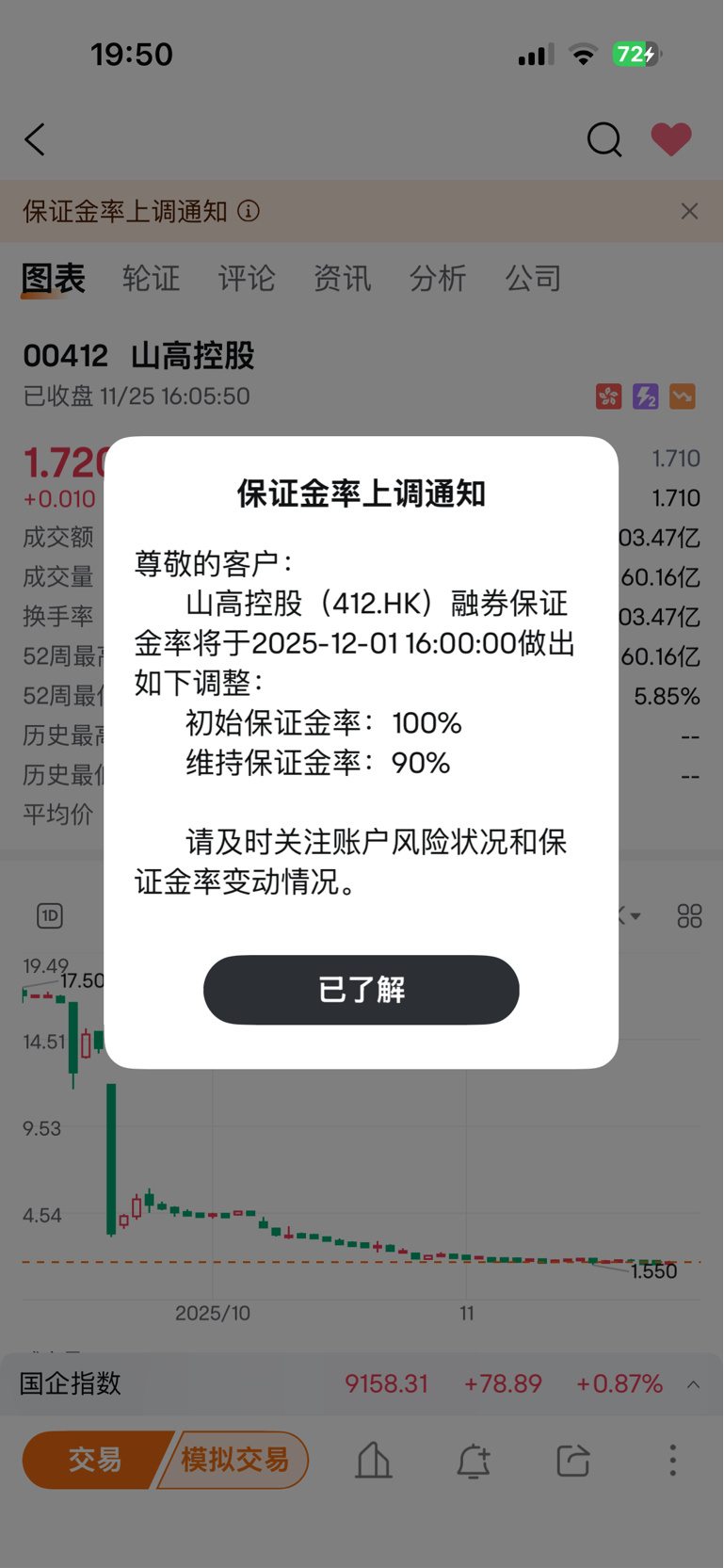 $山高控股(HK|00412)$ 融券做空的只需要亏损10%就要追加保证金,大利好@毛驴老师