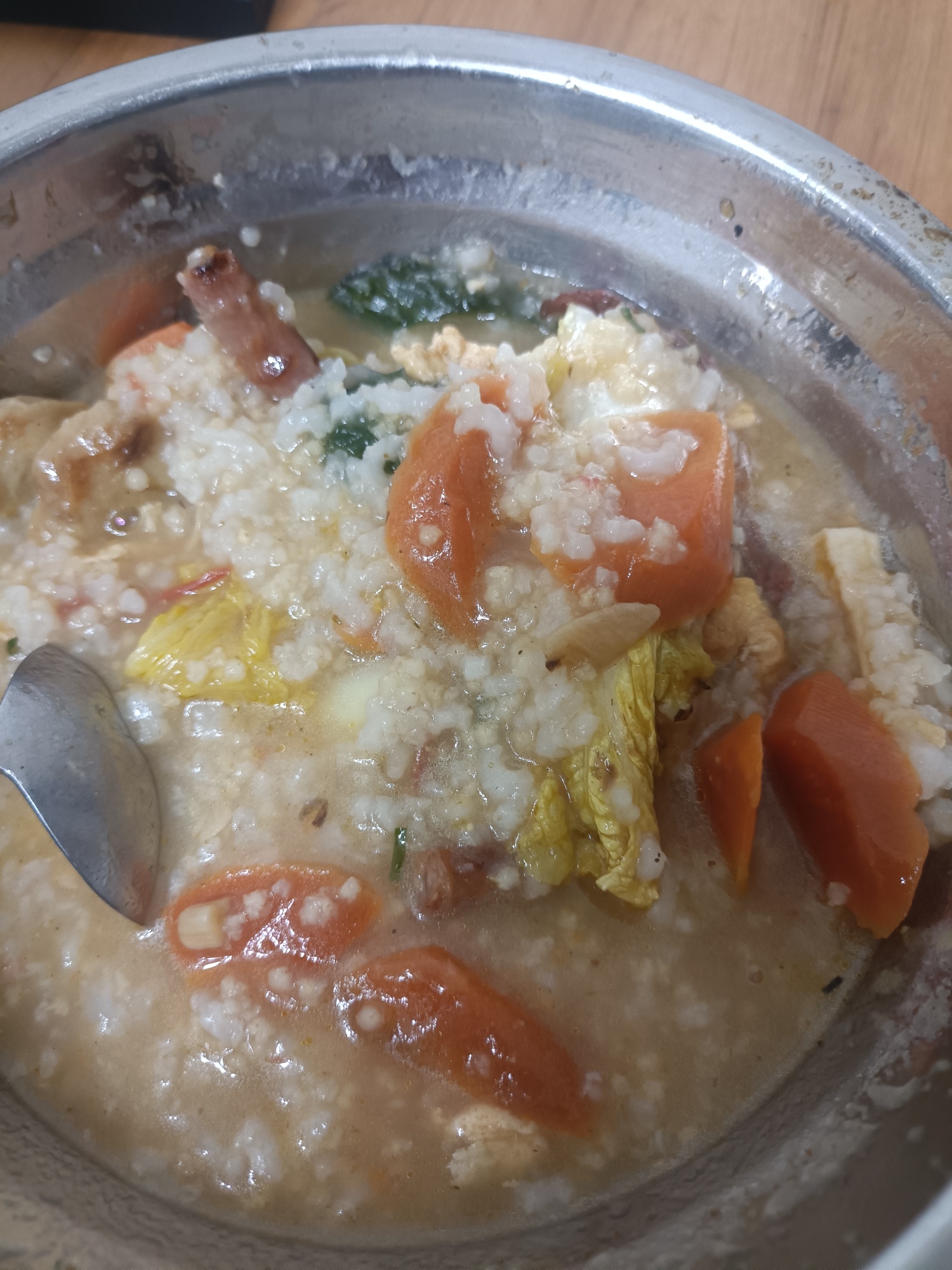 $山高控股(HK|00412)$ 昨天没吃完的麻辣烫,和昨晚的稀饭热来吃,感觉像猪食....