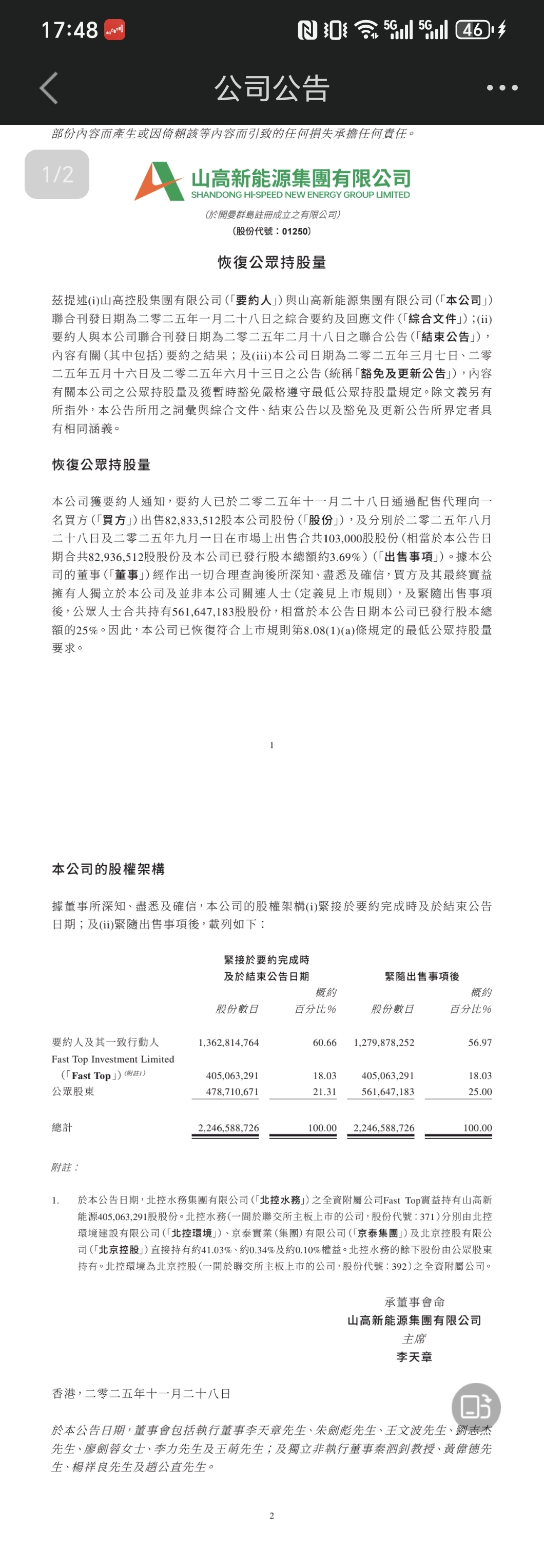 $山高控股(HK|00412)$ 这样看来,shangao整个管理层非常不专业,居然两家上市公司都不符合公众持股25%的要求。这帮子管理层就是来混工资的,毫无职业操守。