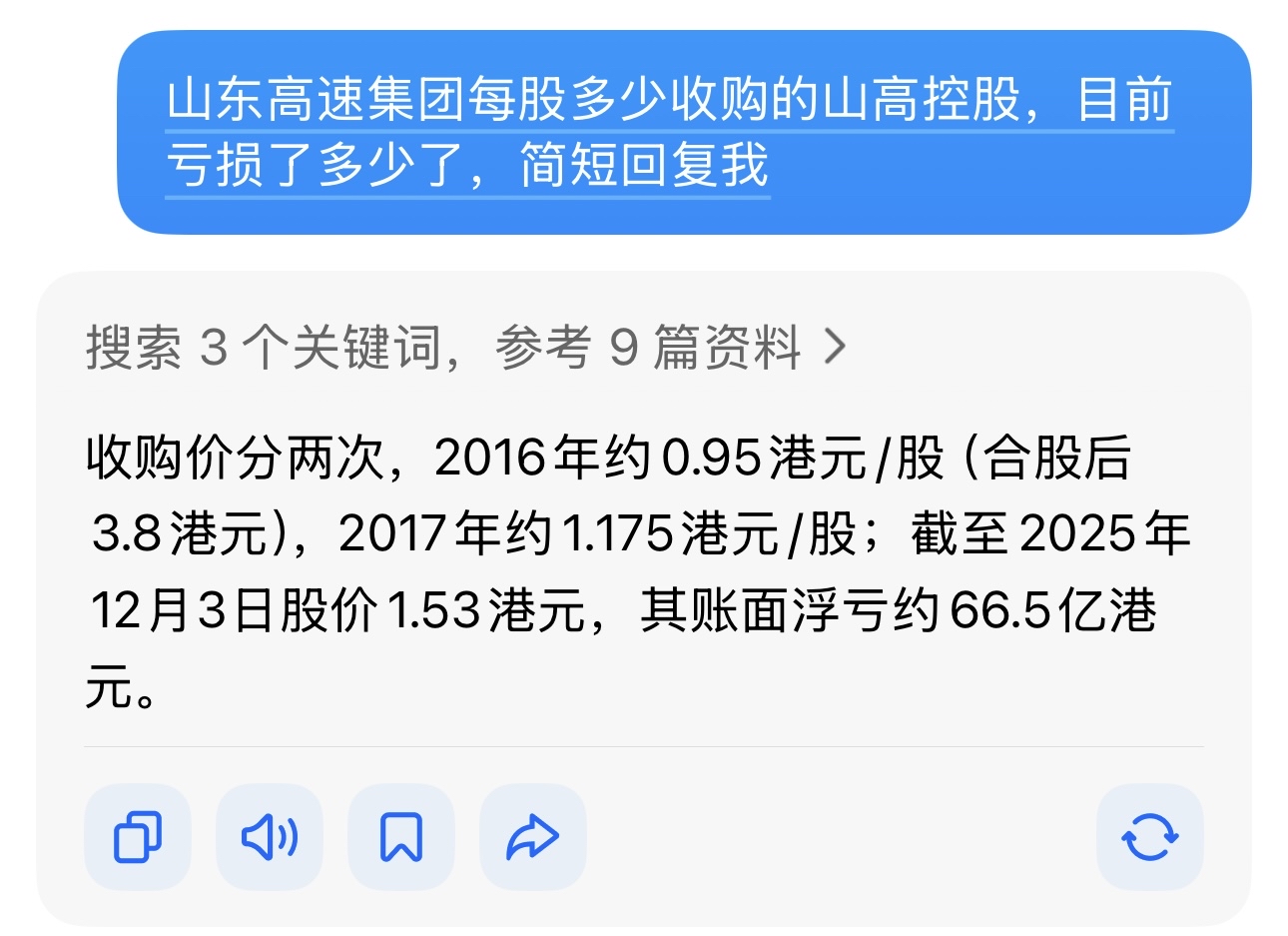 至少山东高速收购后,目前还没有进行过配售,而且山东高速亏损66.5亿了。也没有减持过。