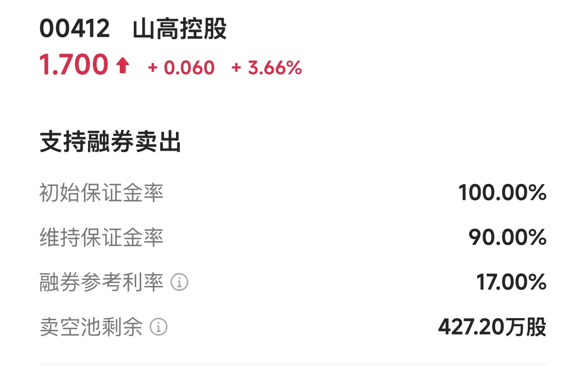 $山高控股(HK|00412)$ 券还的差不多了