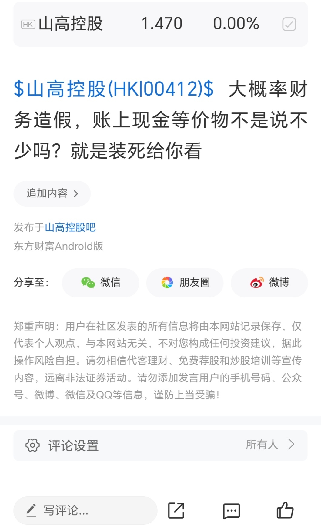 温馨提示: 1.根据《证券法》规定,禁止编造、传播虚假信息或者误导性信息,扰乱证券市场;2.用户在本社区发表的所有资料、言论等仅代表个人观点,与本网站立场无关,不对您构成任何投资建议。用户应基于自己的独立判断,自行决定证券投资并承担相应风险。《东方财富社区管理规定》
