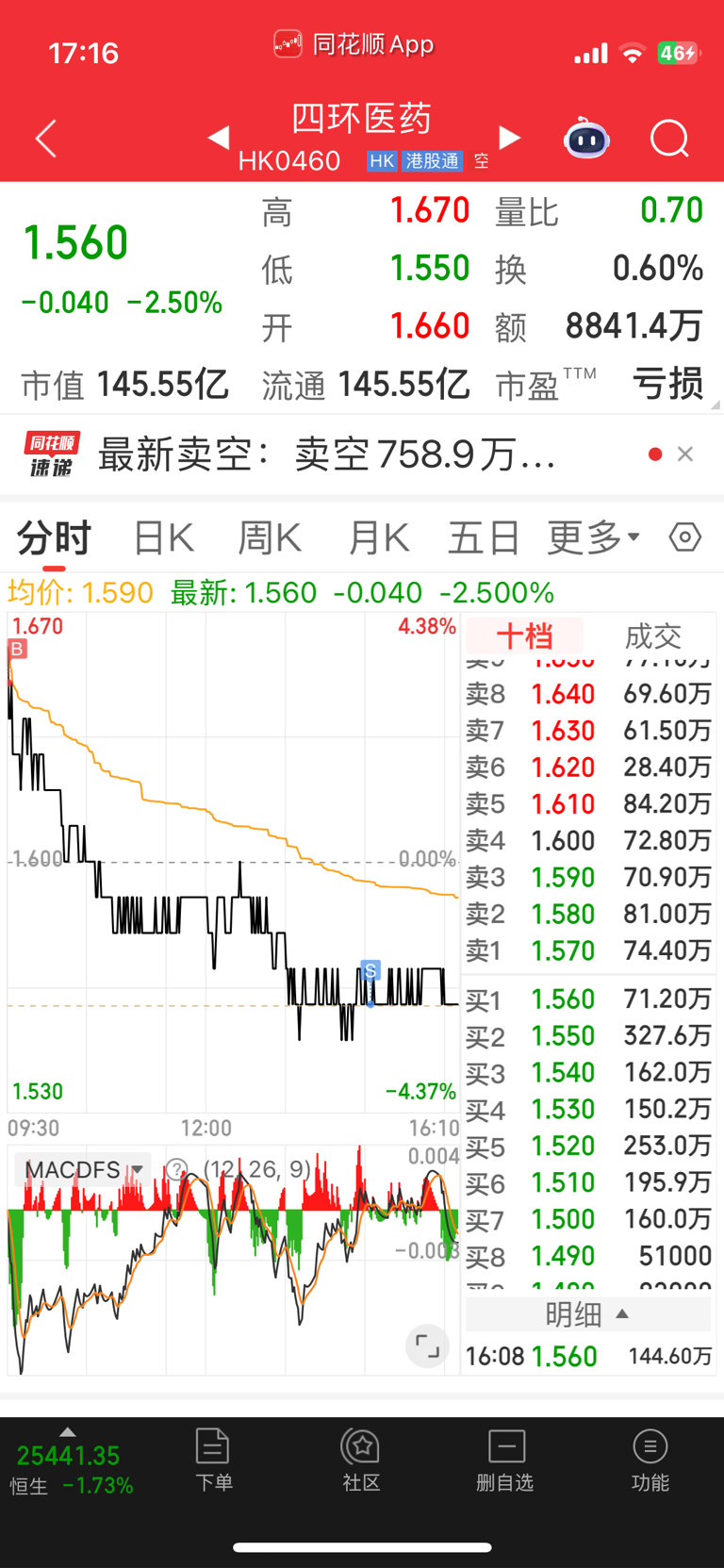 港股现在不是人抄的,早上以为四环医药这个利好会冲一下的,没想到恶庄现在都是利好出
