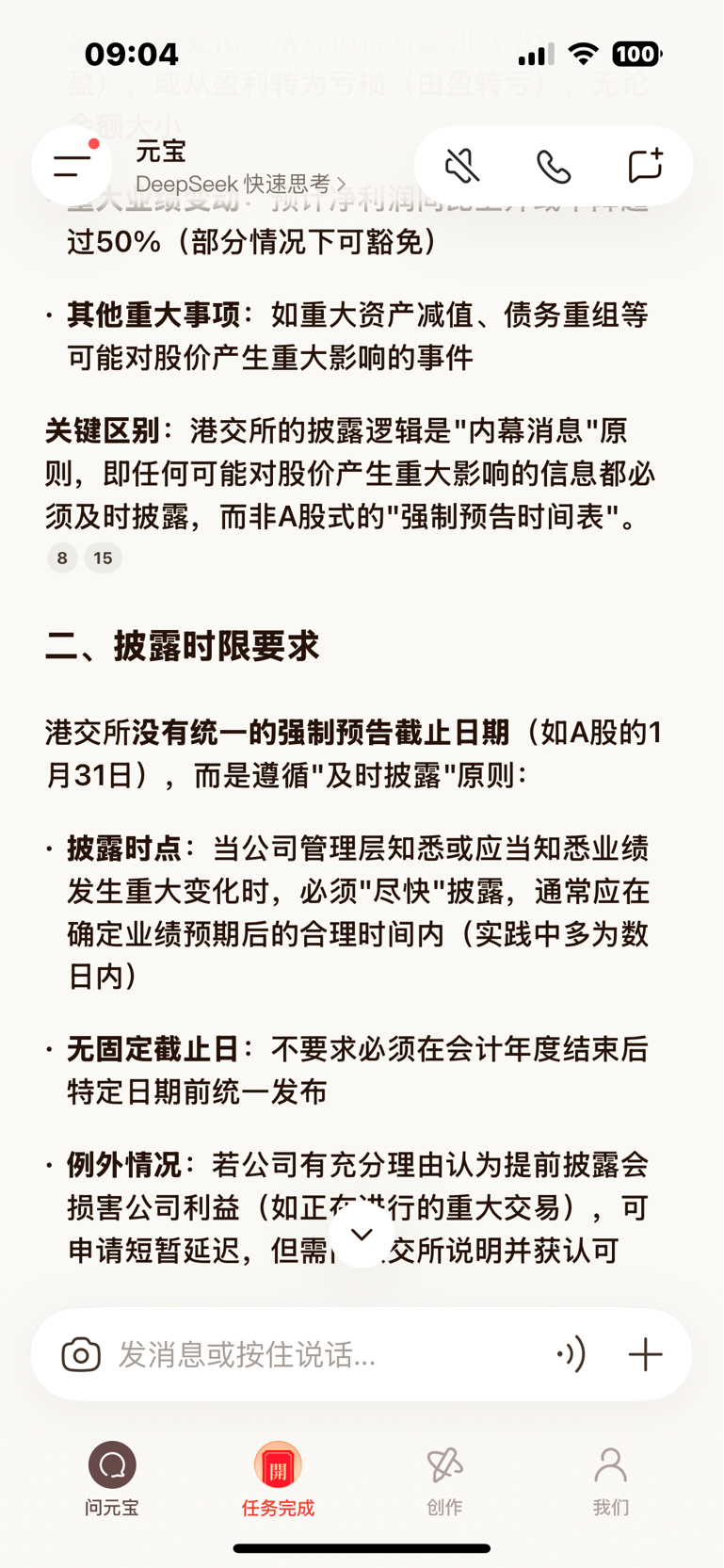 查查元宝港交所只规定尽快披露,什么叫尽快没有规定。