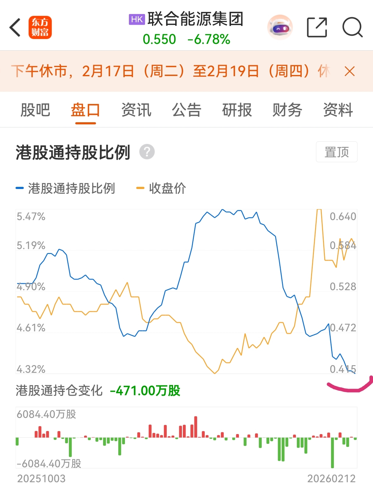 $联合能源集团(HK|00467)$ 港股通已经是最低点了,资金持续流出,持股比例都可以忽略不计了