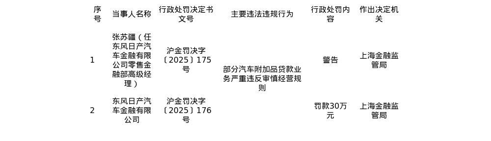 东风日产汽车金融被罚30万,涉部分汽车附加品贷款业务违规