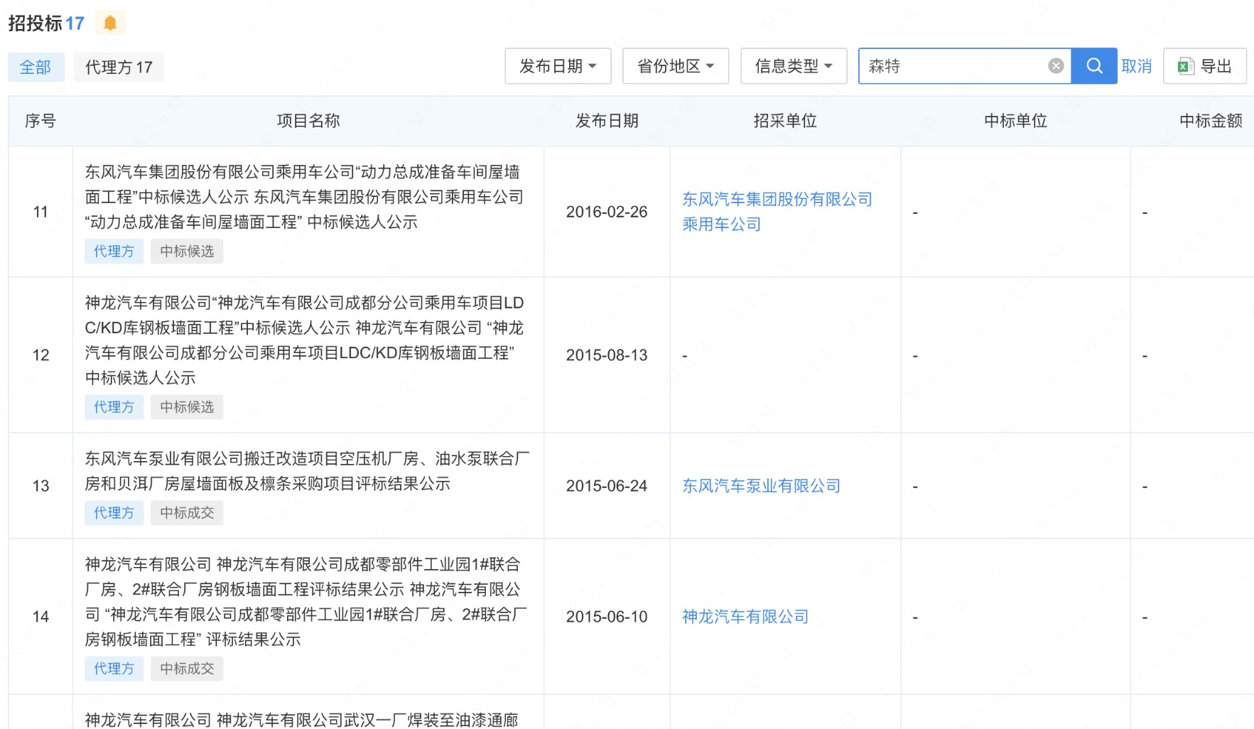 在多方努力下,森特股份成功中标在东风集团相关项目中最大的一笔9507万元。