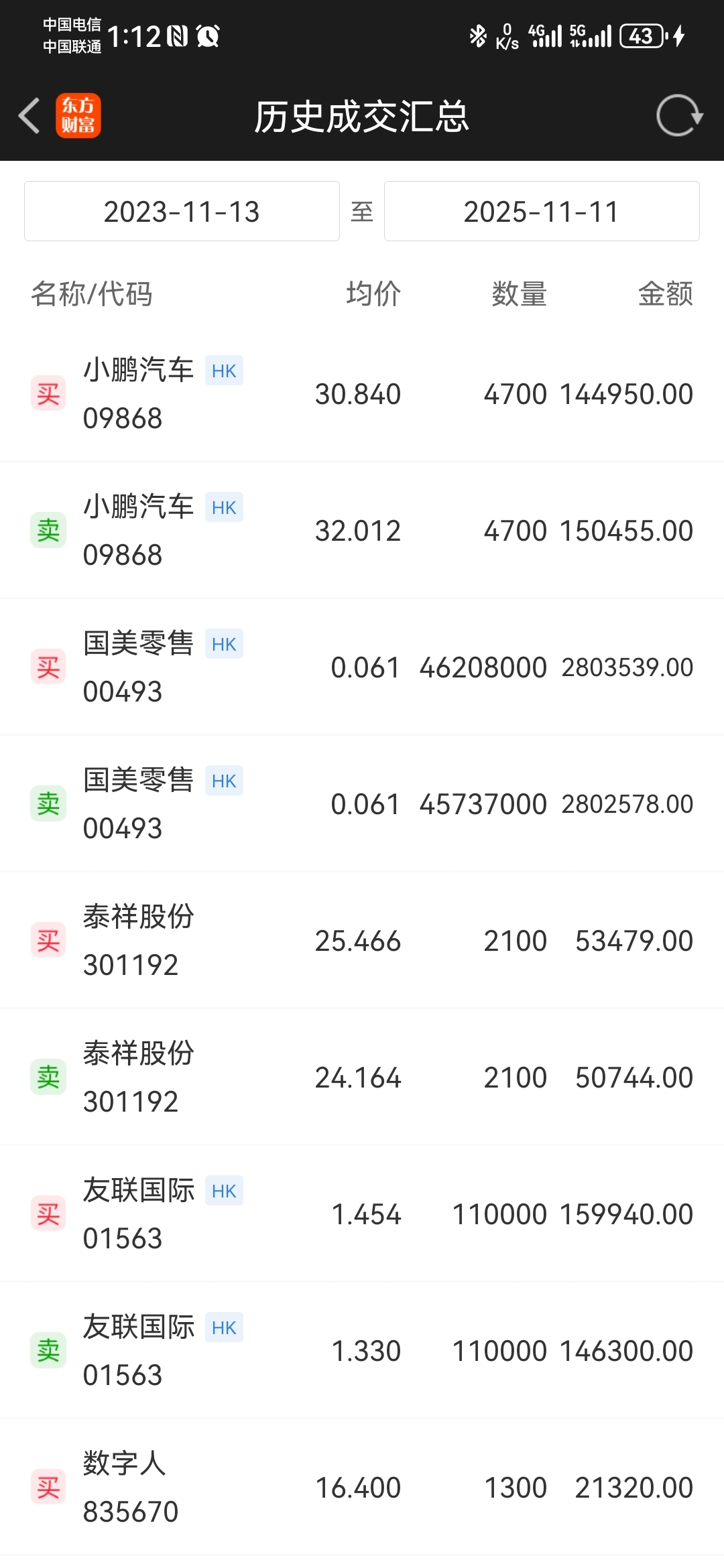 回顾近两年的成交记录,持有小鹏汽车(最高时30元成本持仓1.5万股)与国美零售(0.1元的成本持仓500万股)真是天壤之别!