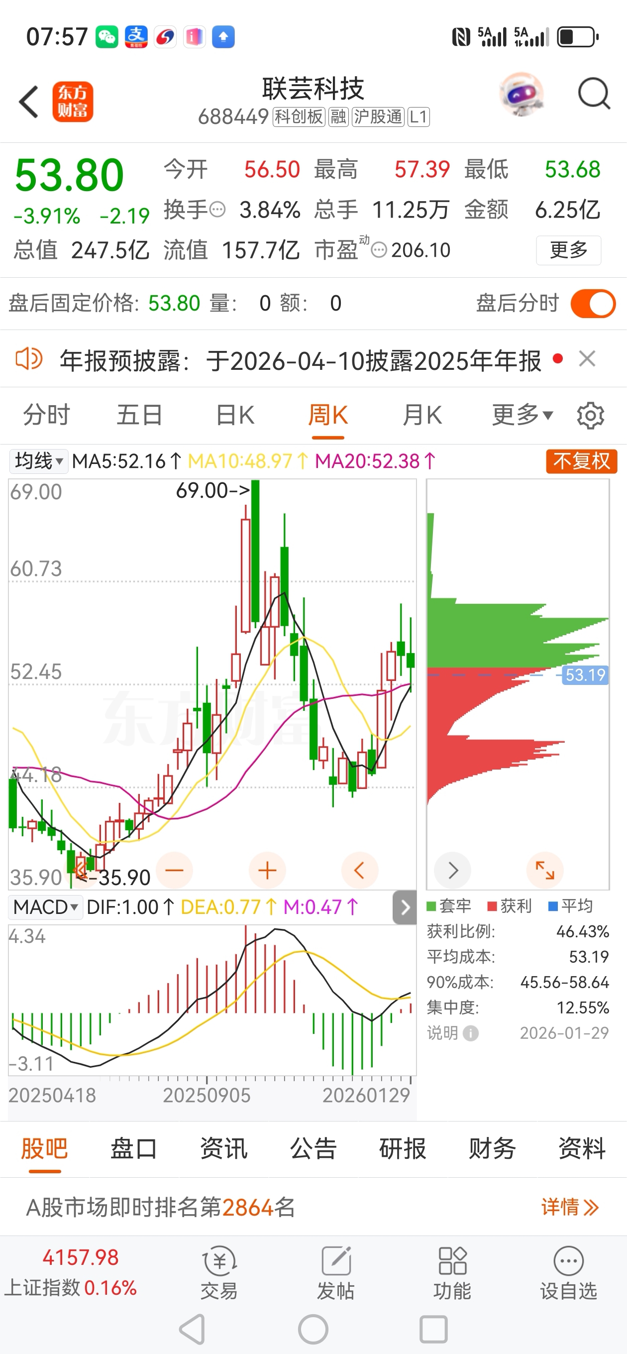 $豪威集团(HK|00501)$ 看周K线我持有的三个半导体都是业绩好大幅度增长的为什么就是不涨呢?不知道什么时候才能走主升浪?太难了,现在的半导体主K线又在山上了,看样子要走回调了,现在是有色过后喝白酒了吃西药了吗?那不过年半导体凉凉了吗?