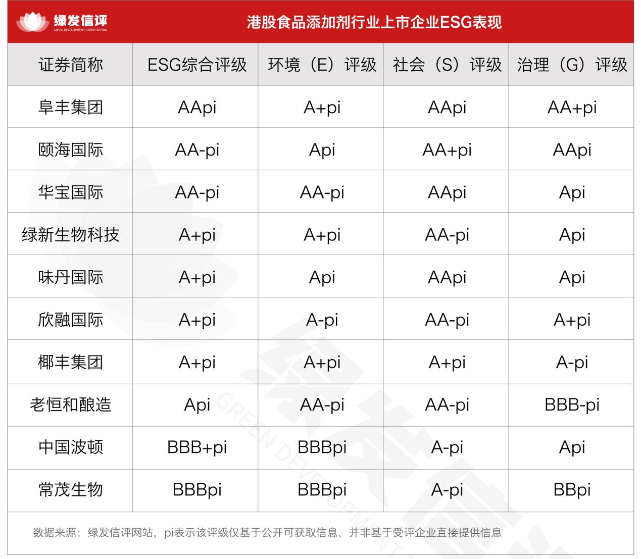 中国财富网讯在健康消费浪潮与全球可持续发展目标的双重驱动下,食品添加剂行业正经历一场深刻的价值观重塑。其角色已超越传统功能赋予者,转而成为连接农业可持续性、食品安全信任与终端健康需求的关键枢纽。近日,海南绿色发展信用评级有限公司(以下简称“绿发信评”)发布的港股上市企业ESG主动评级结果显示,食品添加剂行业ESG整体表现稳健,领先企业正系统性地将ESG要素融入核心战略,以创新实践回应市场对“更安全、更健康、更绿色”产品的期待,行业可持续发展格局初显。