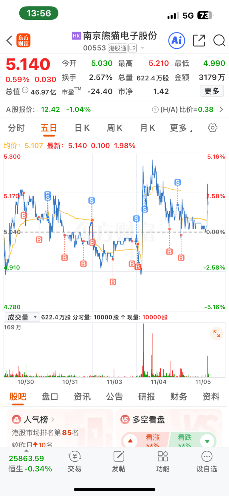 $南京熊猫电子股份(HK|00553)$ 波动太小了好累啊