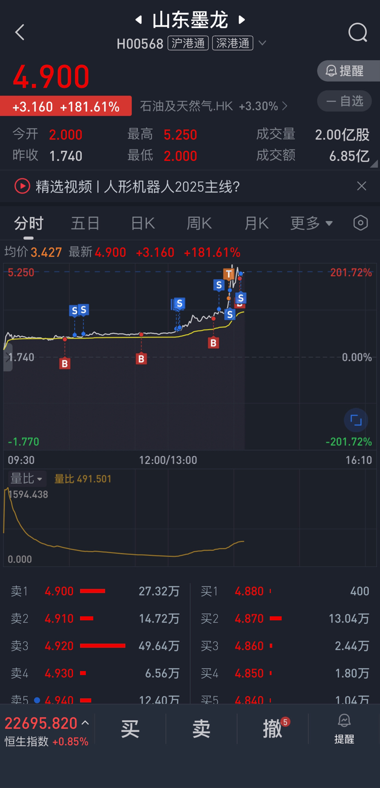 $山东墨龙(HK|00568)$ 赚一点就走了,从2.45买入。没格局,没赚到大的。都是赚一点就跑了。然后后面爆拉,上头,又1分钟就卖掉。也赚了