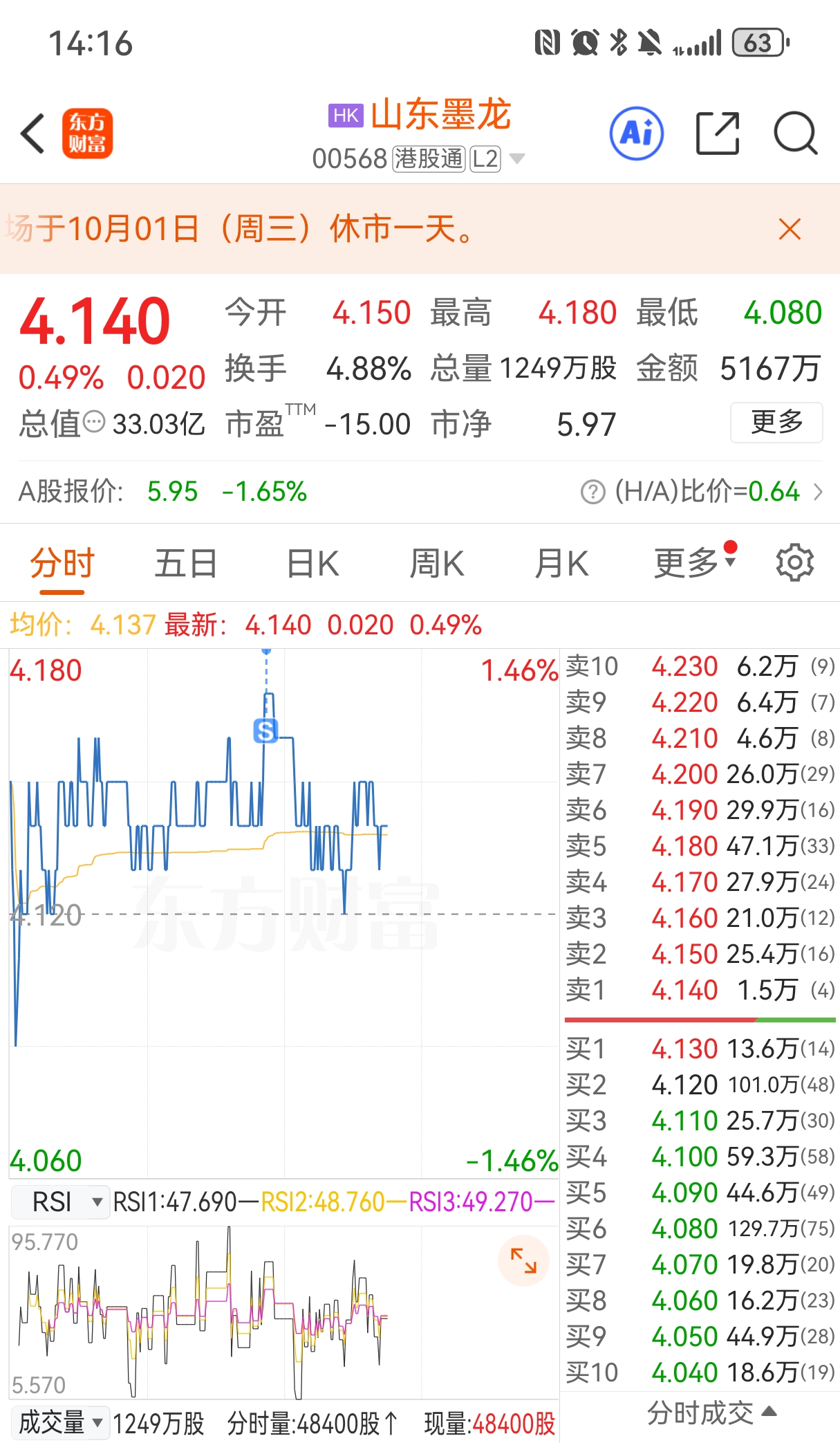 $山东墨龙(HK|00568)$ 安心过节