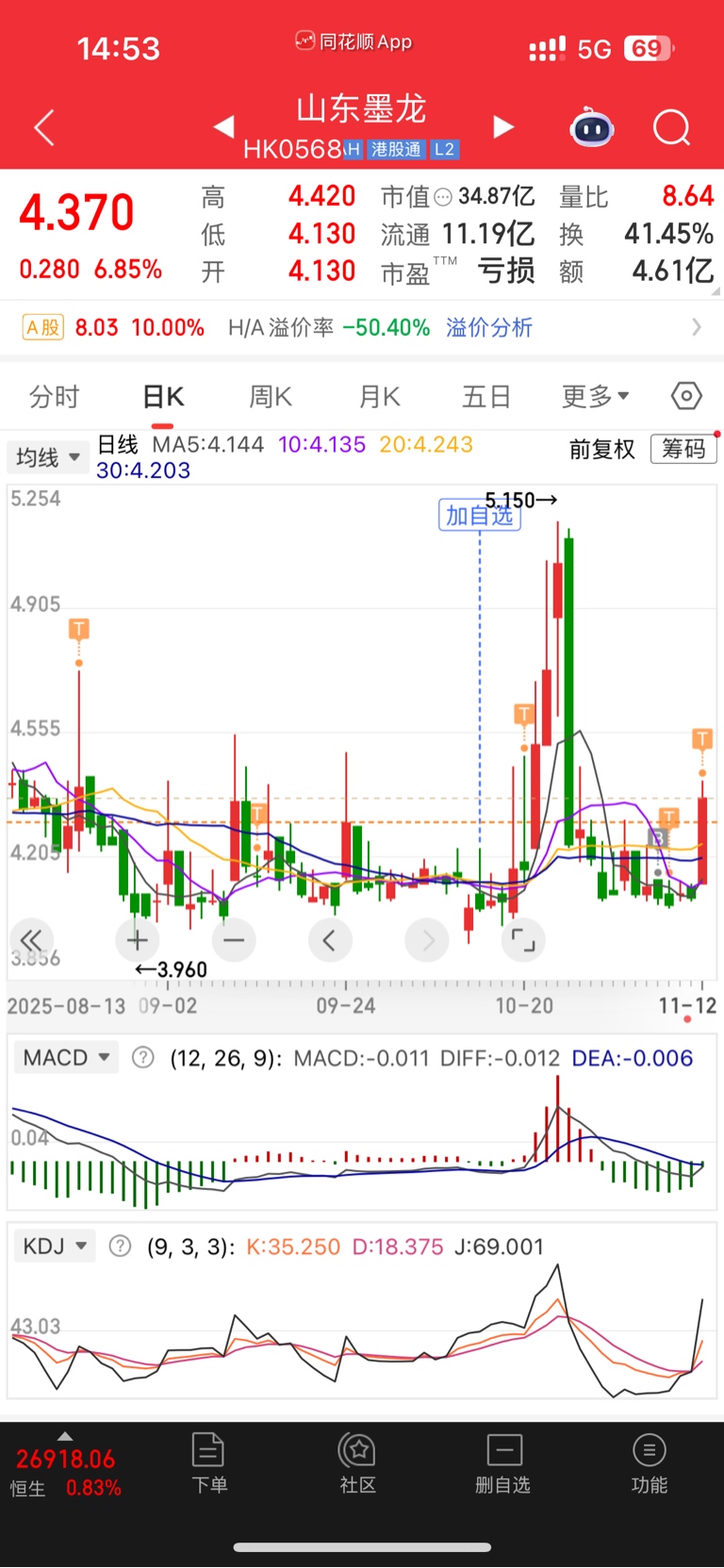 $山东墨龙(HK|00568)$ $山东墨龙(HK0568)$ 今天卖的人有点傻,A股强势封板都没炸过,明天肯定高开溢价啊