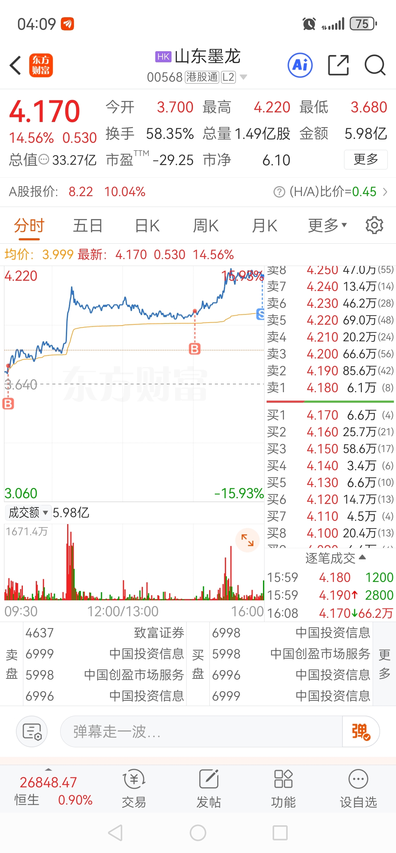 $山东墨龙(HK|00568)$ 墨迹半天过不去我先跑了,明天看情况在买