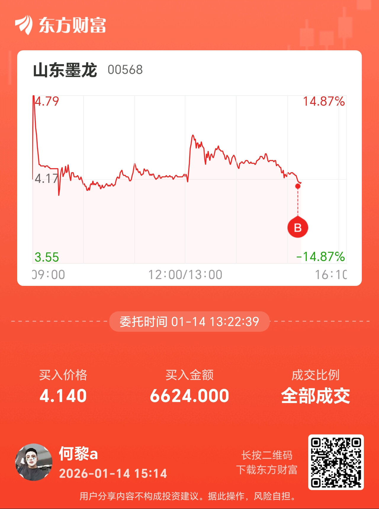 温馨提示: 1.根据《证券法》规定,禁止编造、传播虚假信息或者误导性信息,扰乱证券市场;2.用户在本社区发表的所有资料、言论等仅代表个人观点,与本网站立场无关,不对您构成任何投资建议。用户应基于自己的独立判断,自行决定证券投资并承担相应风险。《东方财富社区管理规定》