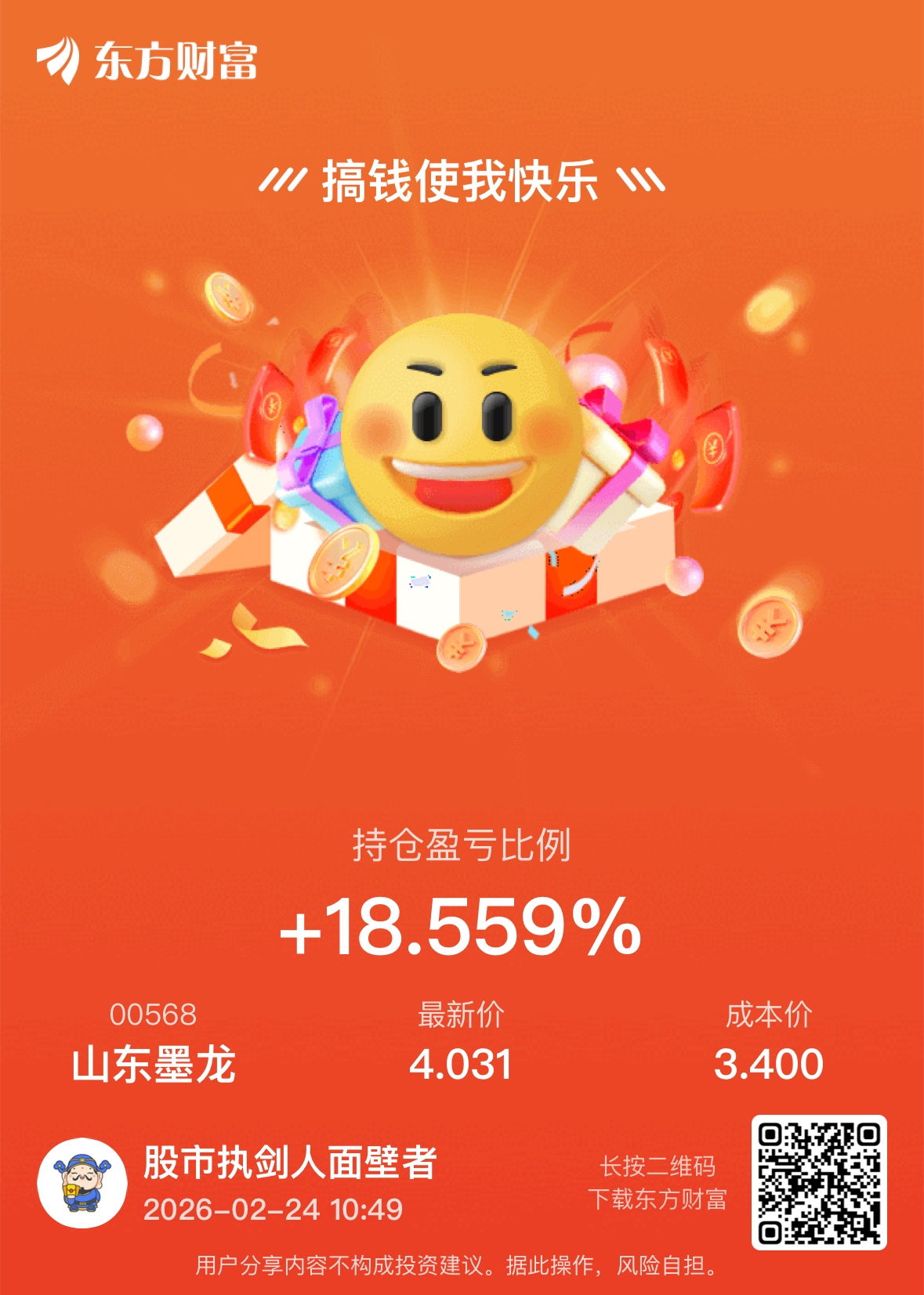 温馨提示: 1.根据《证券法》规定,禁止编造、传播虚假信息或者误导性信息,扰乱证券市场;2.用户在本社区发表的所有资料、言论等仅代表个人观点,与本网站立场无关,不对您构成任何投资建议。用户应基于自己的独立判断,自行决定证券投资并承担相应风险。《东方财富社区管理规定》