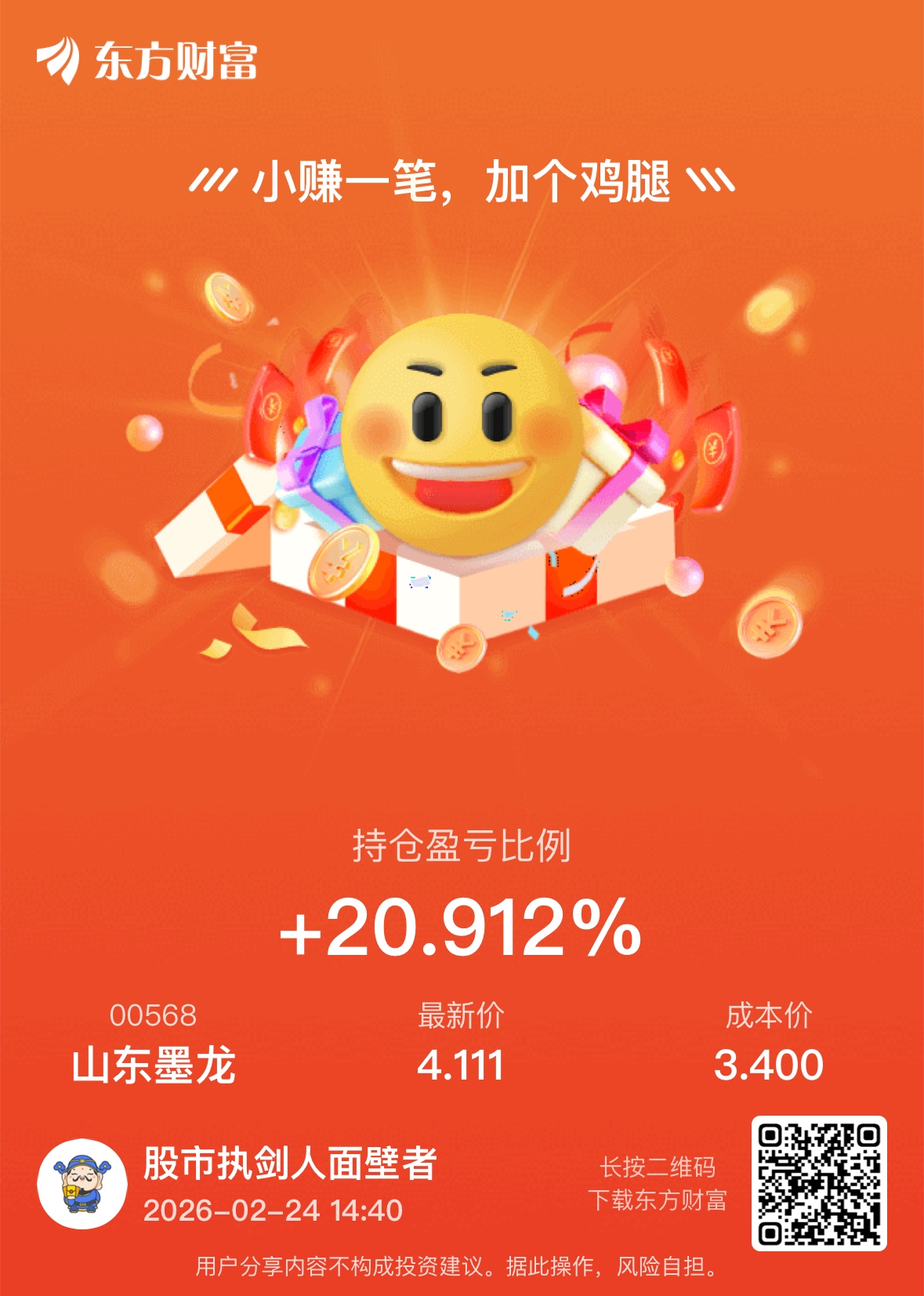 温馨提示: 1.根据《证券法》规定,禁止编造、传播虚假信息或者误导性信息,扰乱证券市场;2.用户在本社区发表的所有资料、言论等仅代表个人观点,与本网站立场无关,不对您构成任何投资建议。用户应基于自己的独立判断,自行决定证券投资并承担相应风险。《东方财富社区管理规定》