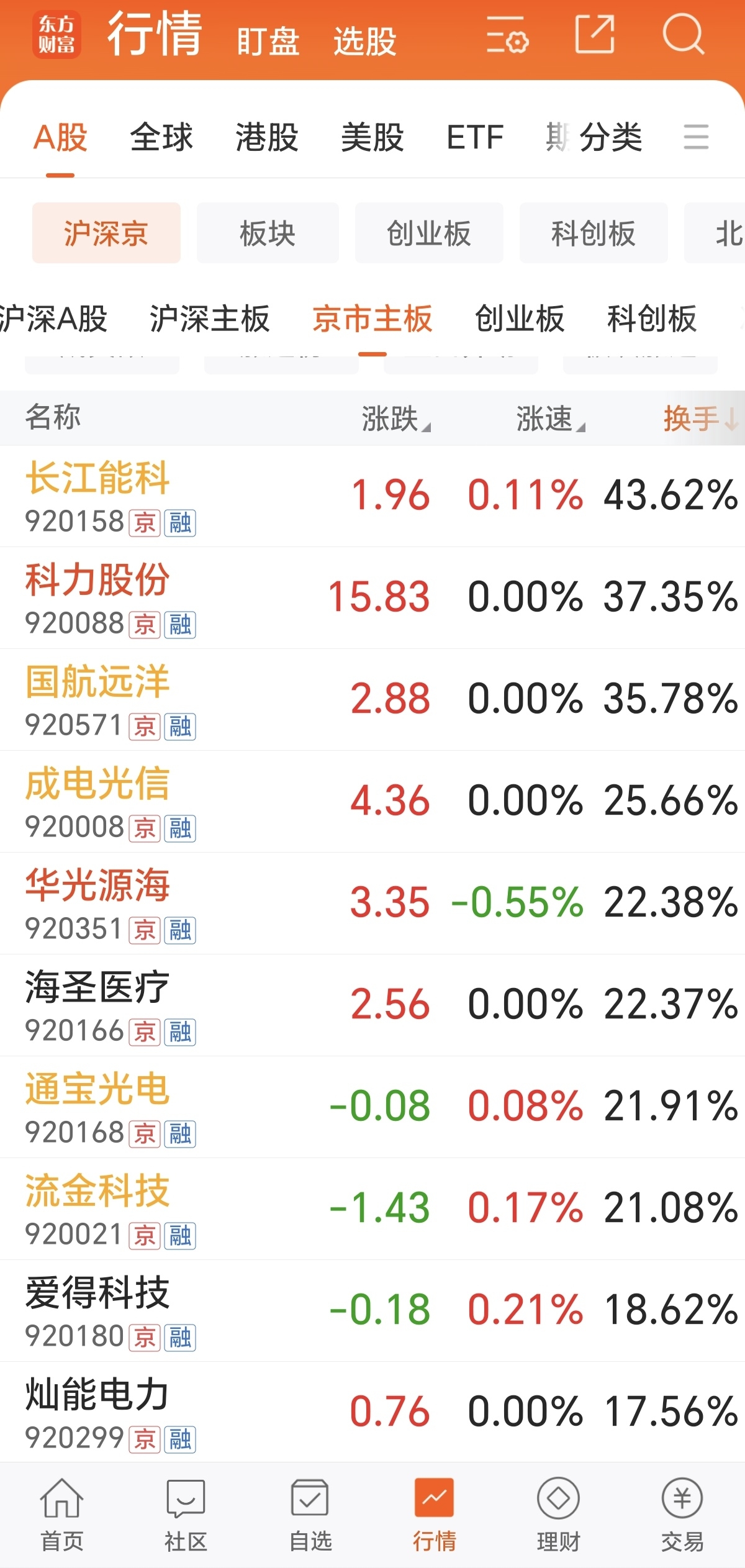 $山东墨龙(HK|00568)$ 跌的不算,就看涨的几只龙头,大家都是换手率和涨幅成正比,就你是个例,啥都不说了,明天涨停才能对的起你这个北证换手率第一!$长江能科(SZ920158)$