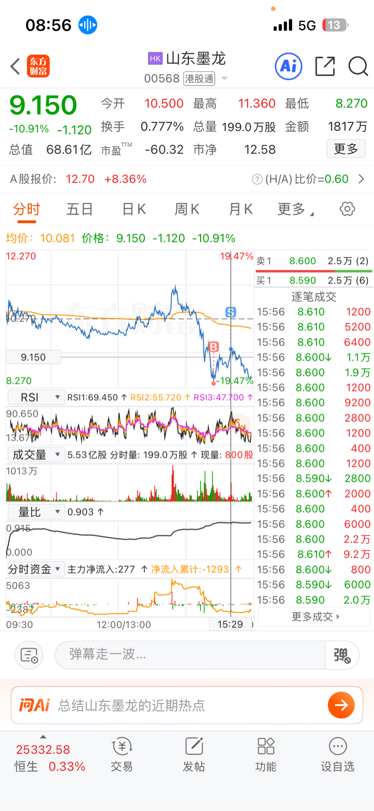 $山东墨龙(HK|00568)$ 今天成功抄底和卖出 感谢卖给我筹码的和买我筹码的人