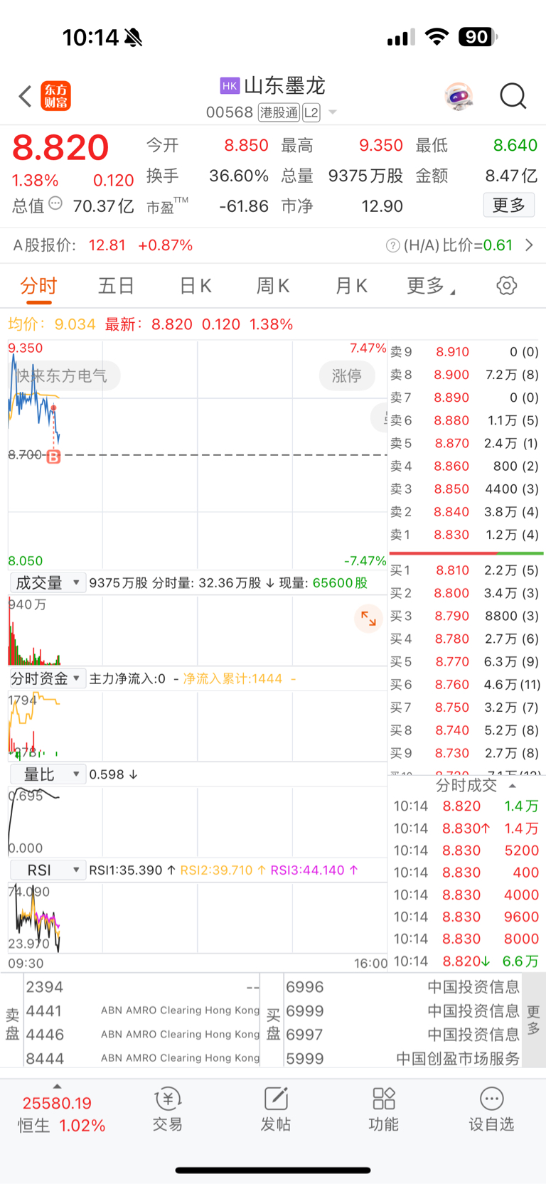 $山东墨龙(HK|00568)$ 我就知道,一早上隔着等我进场呢