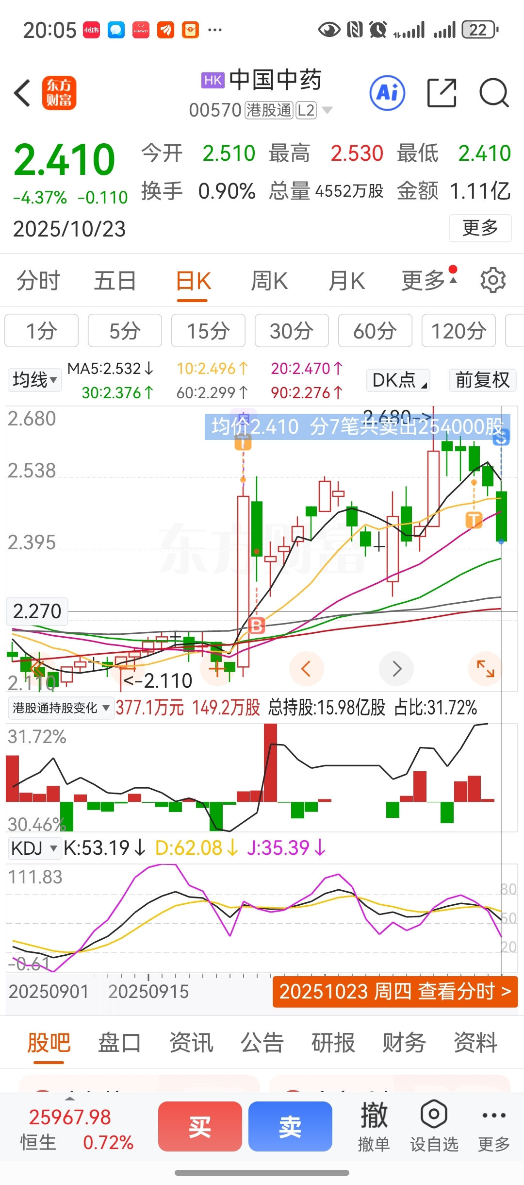 $中国中药(HK|00570)$ 2.38的本,集合竞价清仓了,担心会像去年一样大跌,留下的兄弟发财,涨了的话,记得来滴滴我