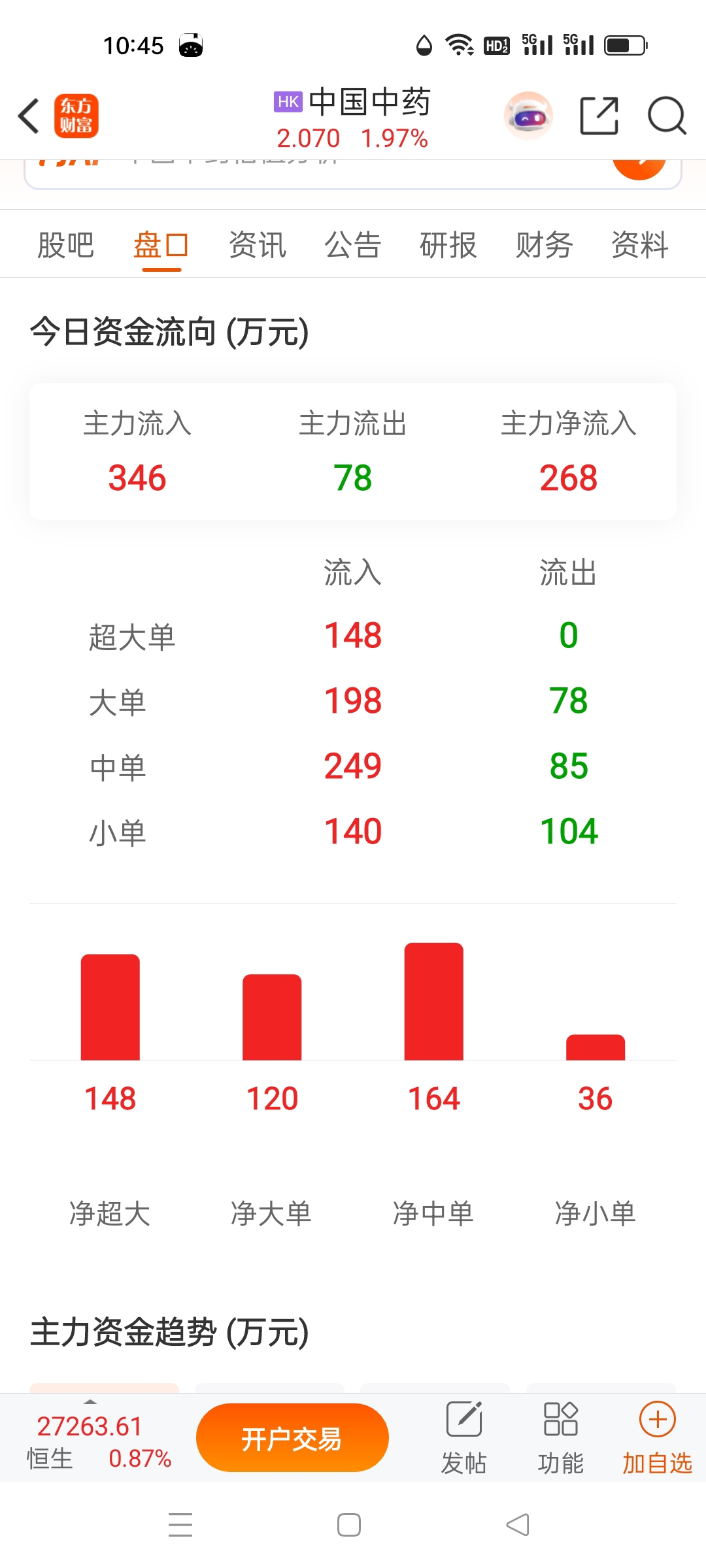 $中国中药(HK|00570)$ 天天净流入了,可以抄底了。