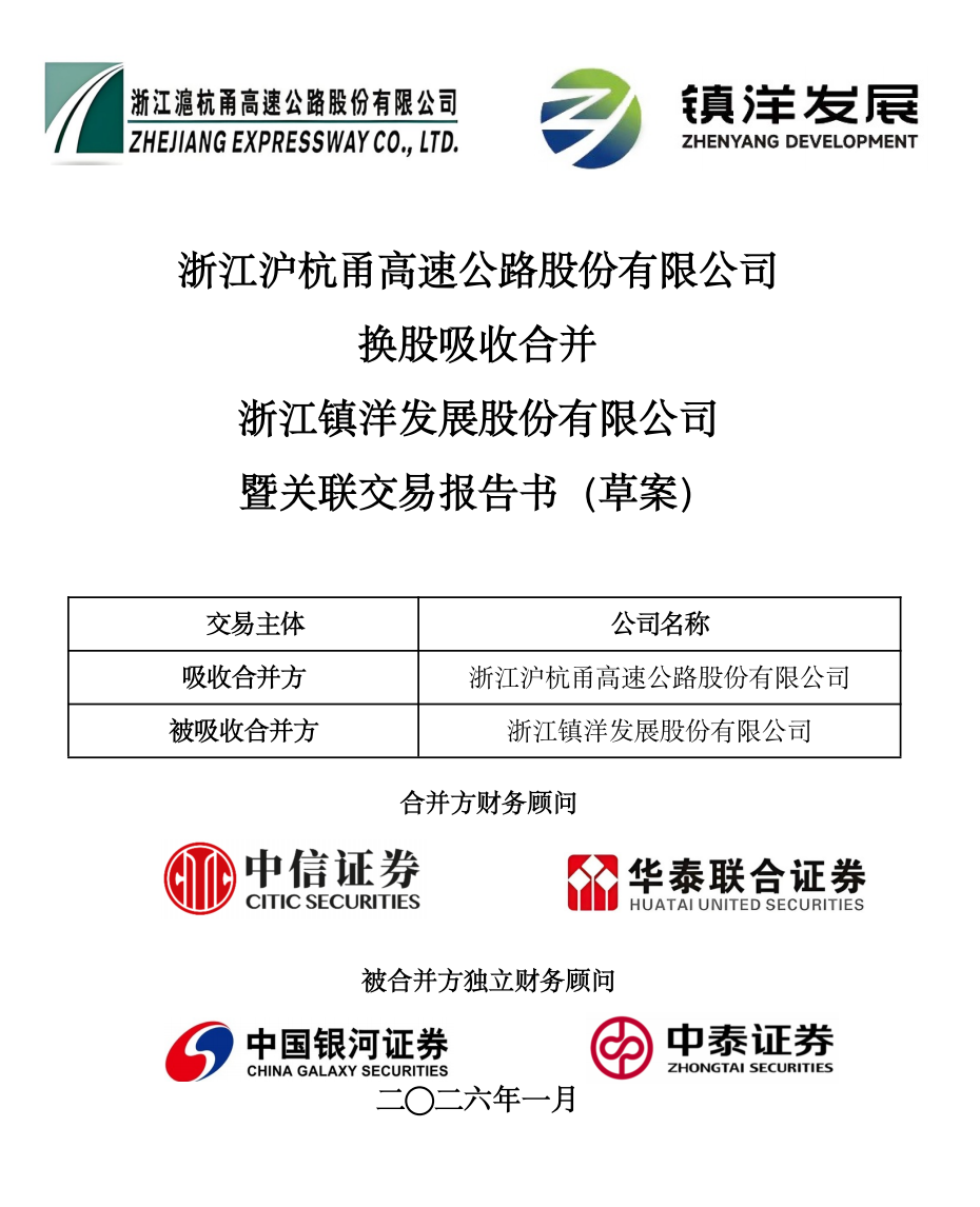 资本市场重磅重组事件,新年首单换股吸并草案发布公告。1月30日,浙江镇洋发展股份有限公司发布公告,浙江沪杭甬(00576.HK)换股吸收合并镇洋发展(603213.SH)重组报告书(草案)重磅出炉。本次交易是浙江省属国企史上首例“H吸A”跨市场整合,打破行业多年格局,是近年来境内市场最大规模“H吸A回A”交易,更将成为国企优化资源配置的突破性实践。