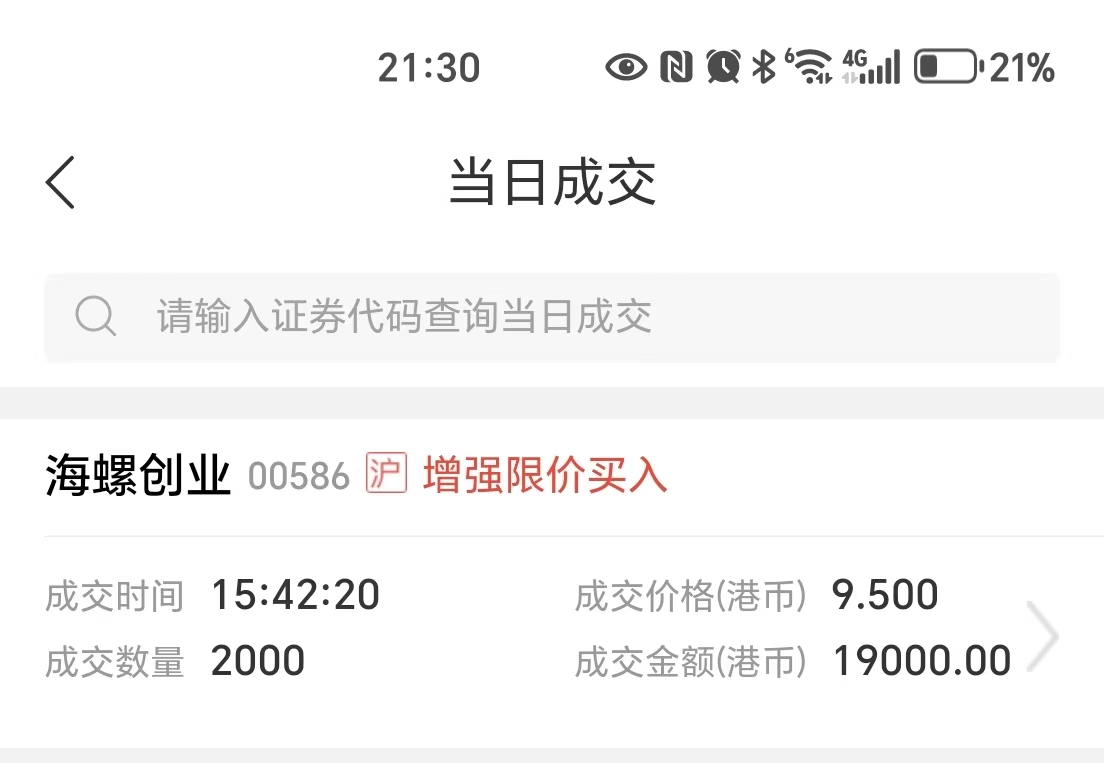 逢低买入,耐心持有!今天海创(00586)继续下探,下午设单9.50(港元)20