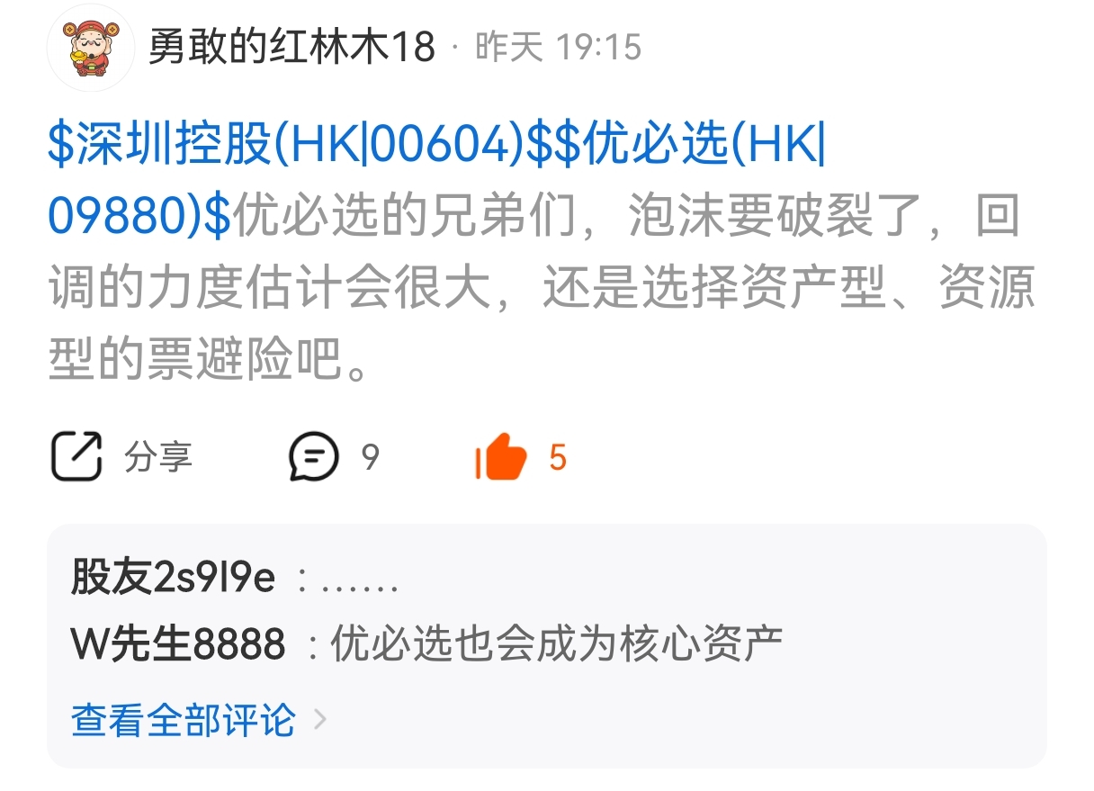 $深圳控股(HK|00604)$ $优必选(HK|09880)$ 优必选的兄弟们,还是来深圳控股避险吧,或者清仓休息也行啊。月有阴晴圆缺,为何要相信它优必选会一直涨呢?