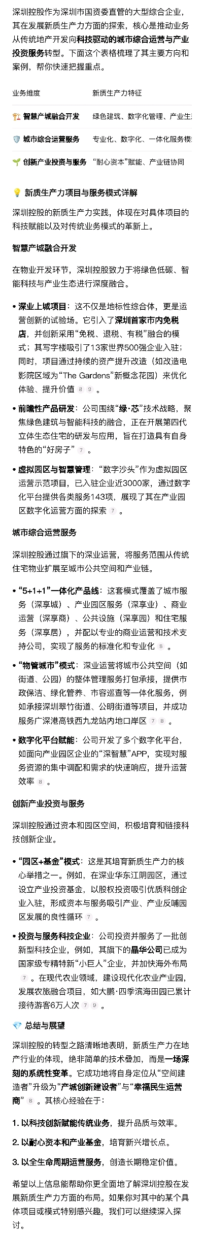 $深圳控股(HK|00604)$ 新质生产力。“免税+”、“地产+”、大湾区消费一体化、深圳免税资产证券化。都是深圳控股需要落实的政策和估值暴增的亮点。$阿里巴巴-W(HK|09988)$ $腾讯控股(HK|00700)$
