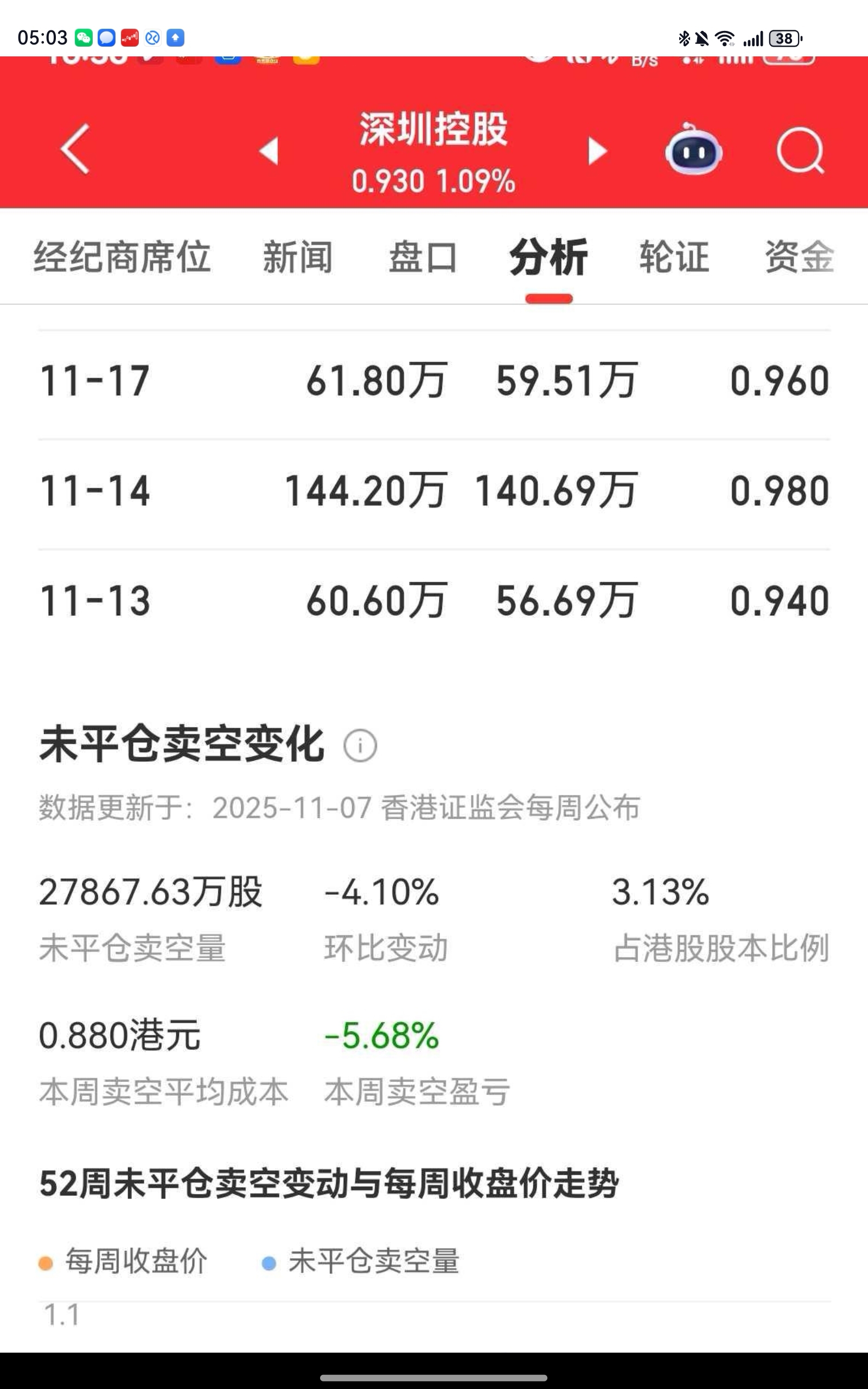$深圳控股(HK|00604)$ $深圳控股(00604)$ 深圳控股 有大量的卖空未平仓量,最新数据2.78亿多未平仓卖空量。做空卖空资金严重亏损