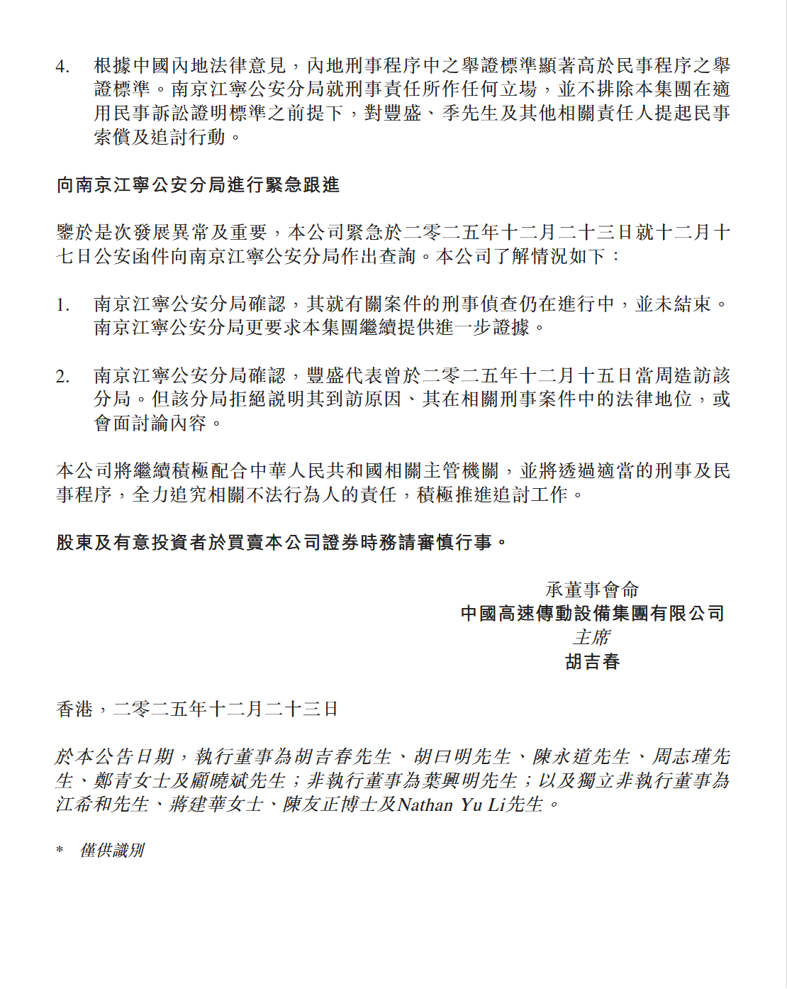 中国高速传动公告截图