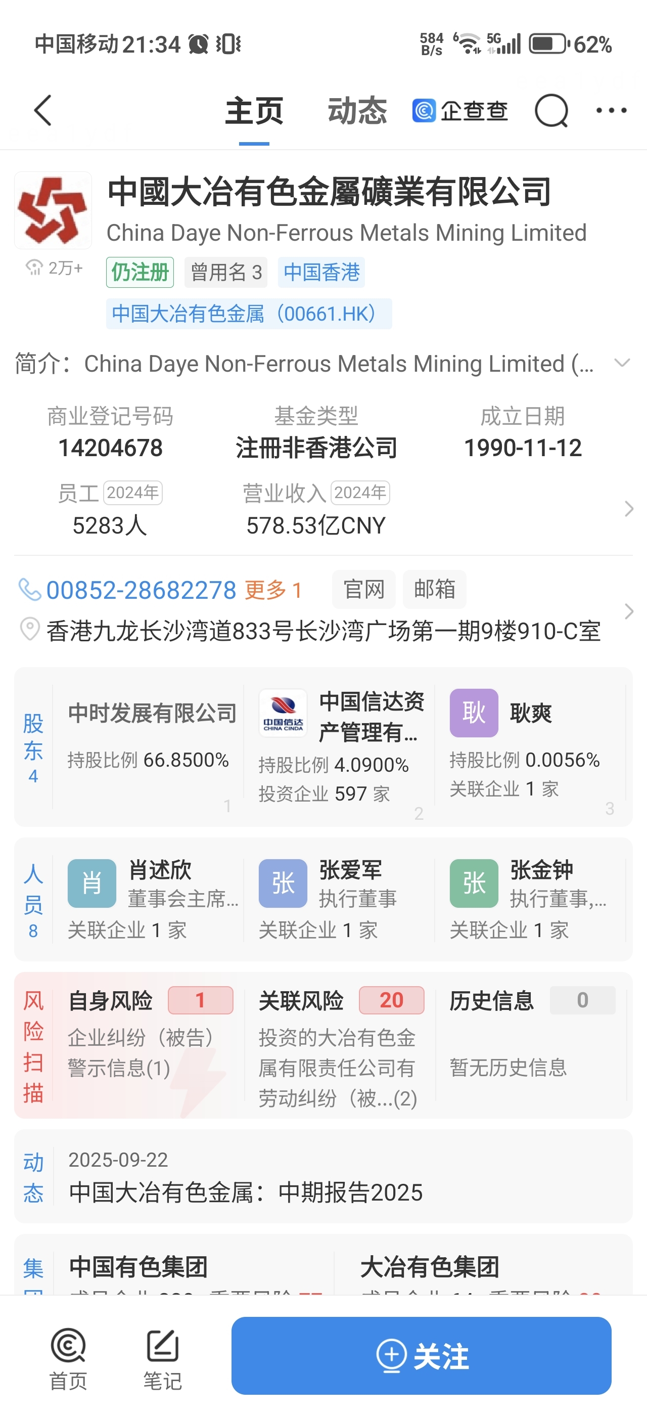 $中国大冶有色金属(HK|00661)$ 中国信达持有大冶有色金属4.09%股份