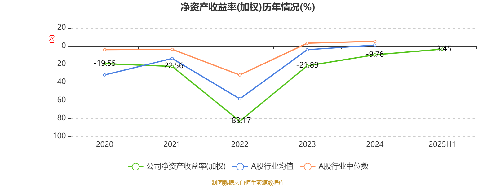 2025年上半年,公司平均净资产收益率为-3.45%,较上年同期上升3.22个百分点。