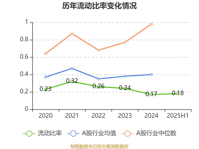 2025年上半年,公司流动比率为0.18,速动比率为0.17。