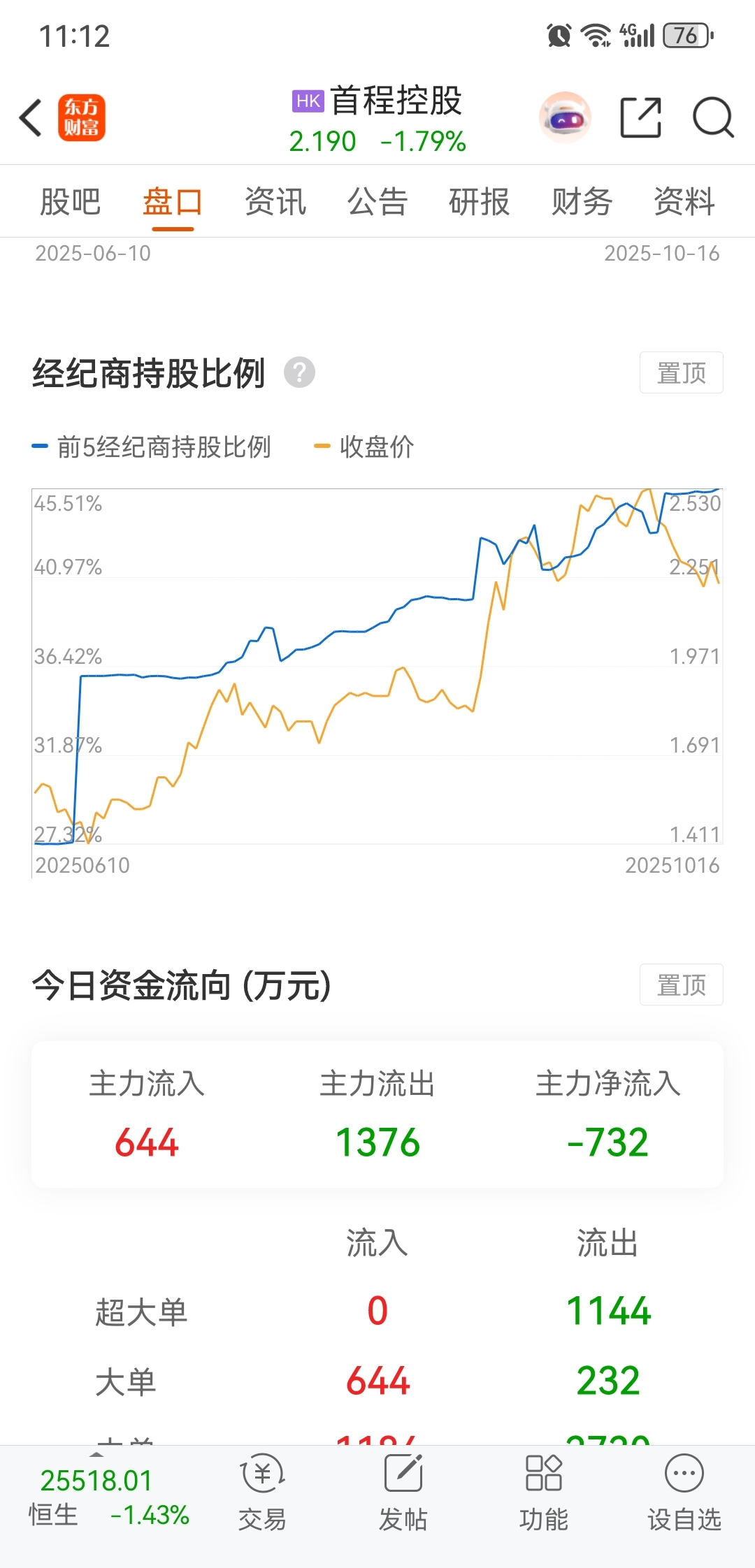 $首程控股(HK|00697)$ 经济商持股比例一直上升, 从6月到现在,主力持股比例27%上升到45%了。