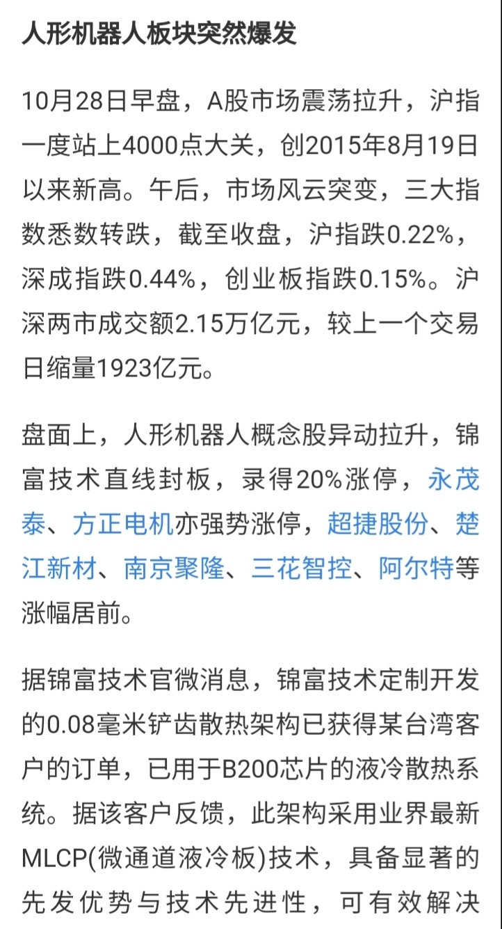 10月28日,人形机器人板块突然爆发!超10股涨停