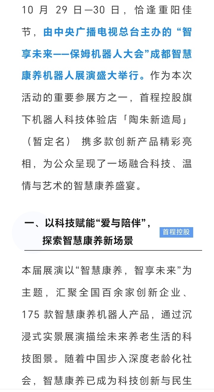 亮相央视智慧康养机器人展演,首程机器人科技体验店展出多款创新产品|