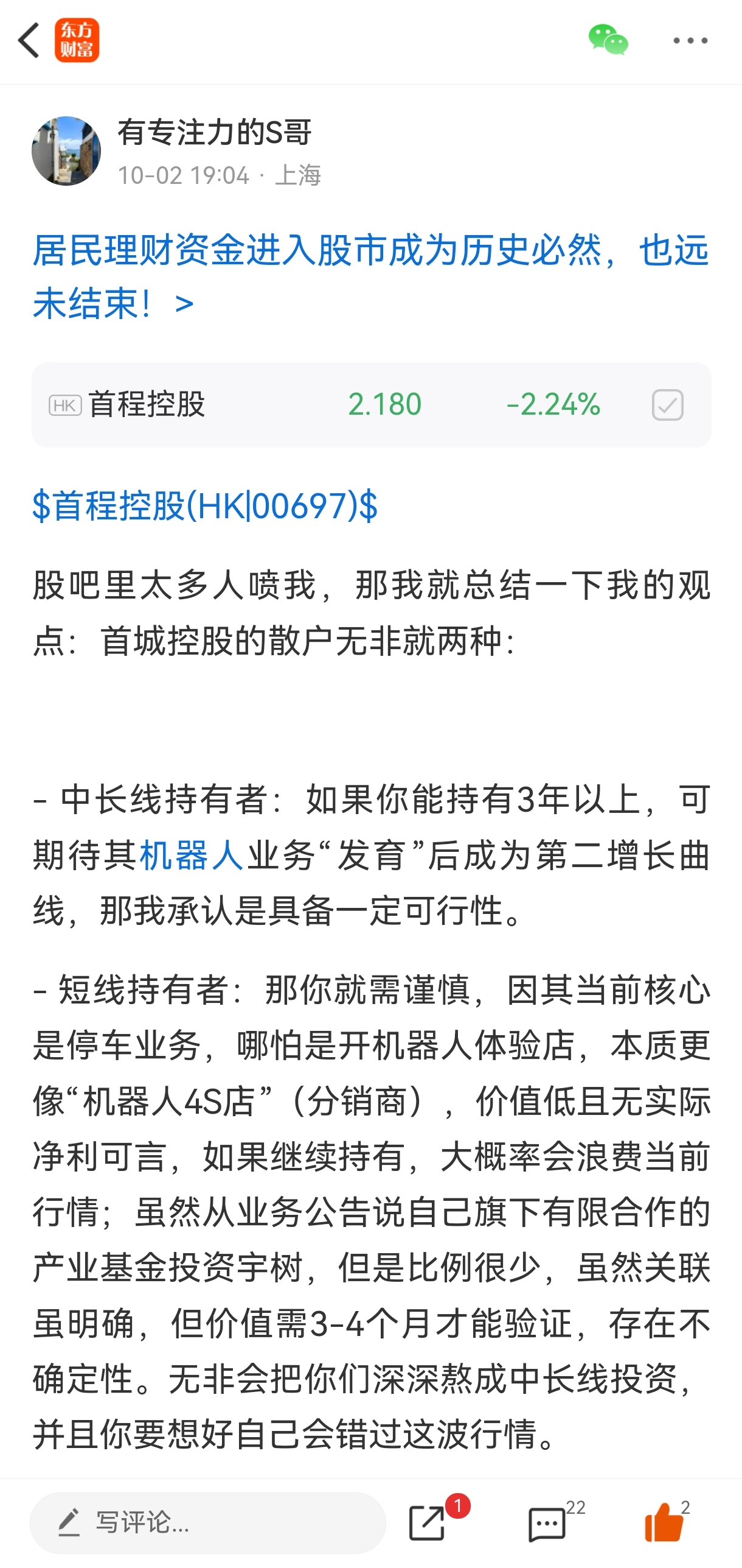 $首程控股(HK|00697)$ 10月的时候就很客观的说过了,短期就是结束了。透过事实看本质。