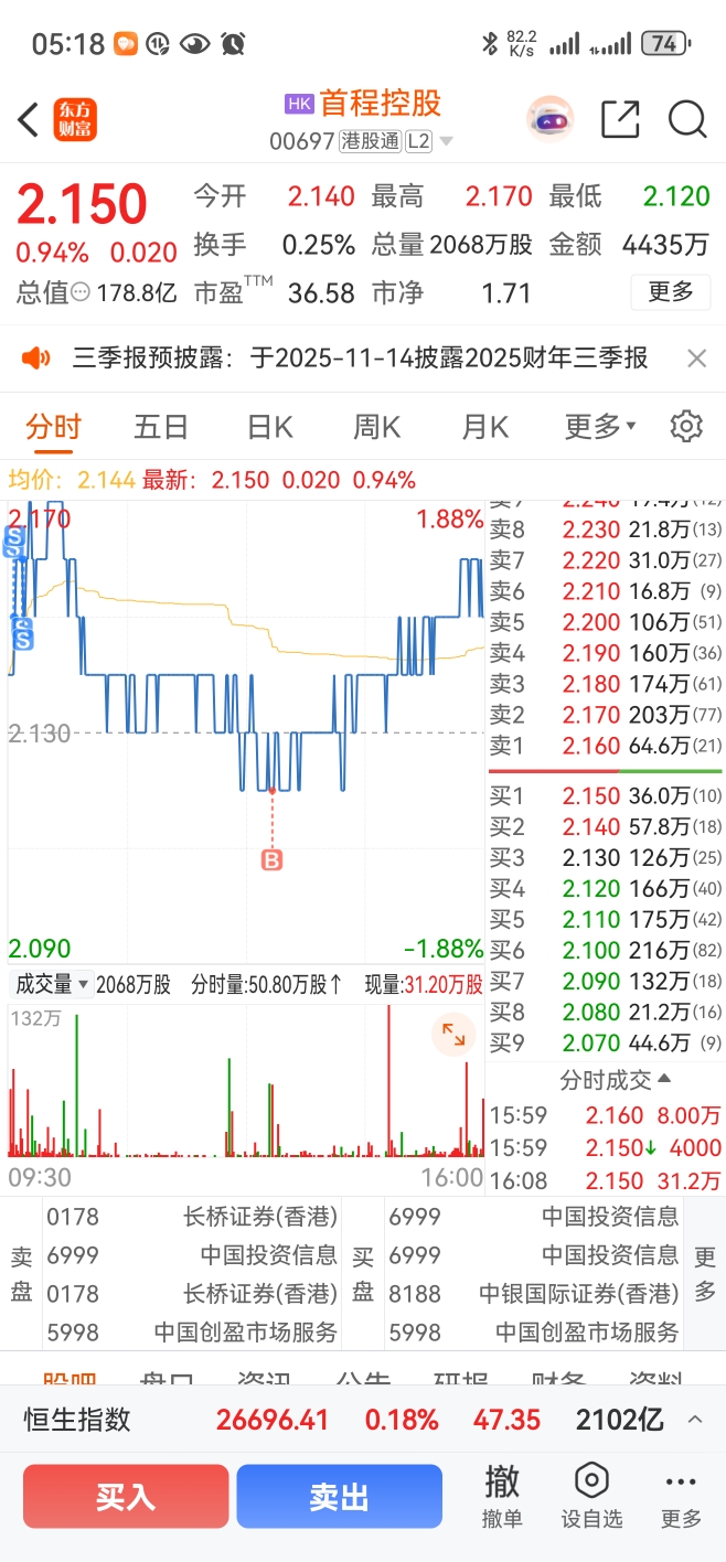 $首程控股(HK|00697)$ 不放量上涨就做T,明天很关键,看看主力怎么玩,其他机器人板块也不强,小鹏可以但咱不敢玩,别的机器人如果回踩双底,首程也跟随的话,还要加仓,无量上涨不加