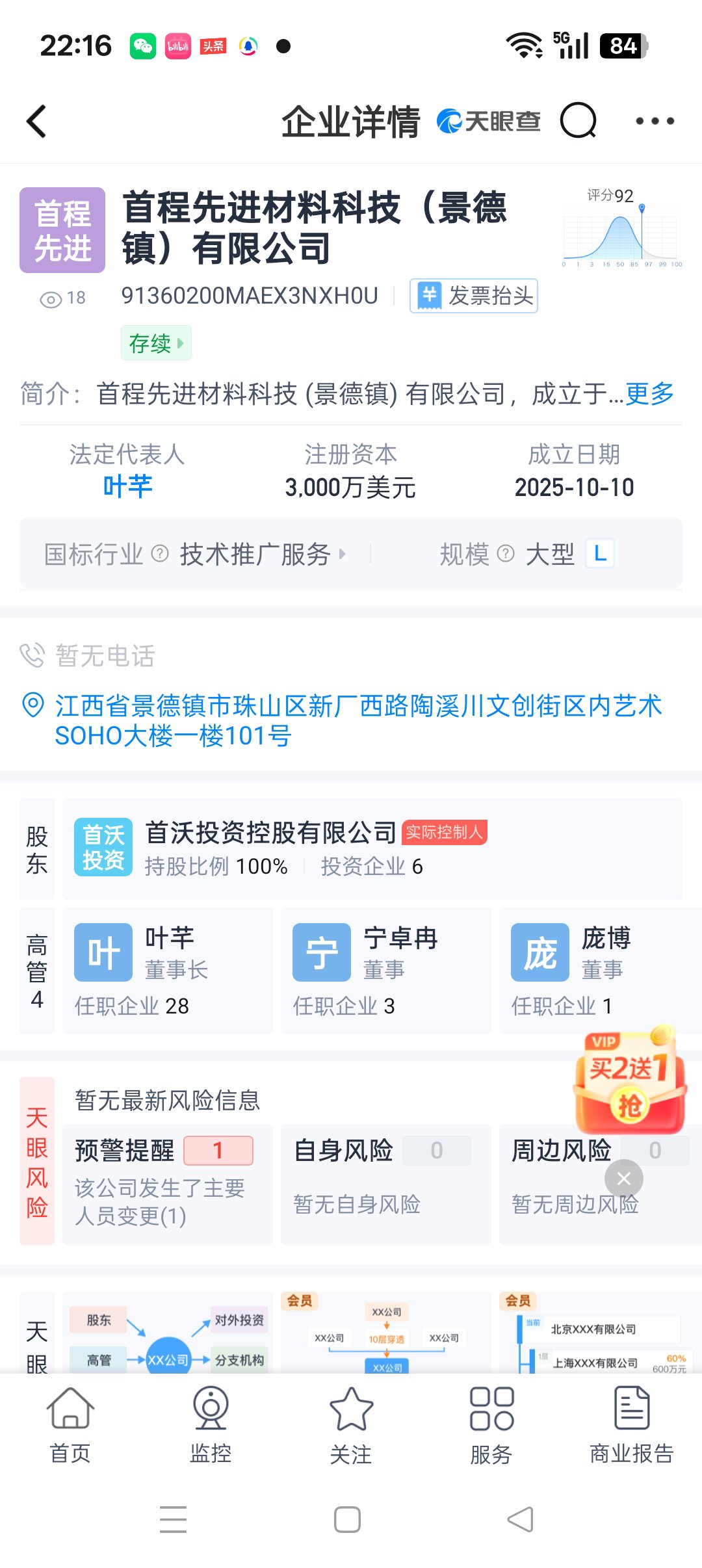 而公司在半年报公告的将成立首程机器人先进材料科技(景德镇)有限公司已经落地,通过天眼查得知公司已经于2025年1010日正式成立,注册资金高达3000万美元,折算成人民币高达2.15亿人民币 如果说以前投资众多的机器人公司占比都不多,每个公司比例不超过5%,那么这次不得了啦!公司100%控股,这下那些多嘴多舌的人应该没有意见了吧!