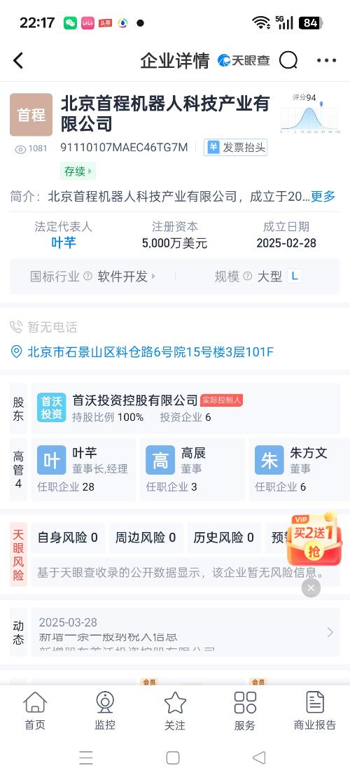 而公司在半年报公告的将成立首程机器人先进材料科技(景德镇)有限公司已经落地,通过天眼查得知公司已经于2025年1010日正式成立,注册资金高达3000万美元,折算成人民币高达2.15亿人民币 如果说以前投资众多的机器人公司占比都不多,每个公司比例不超过5%,那么这次不得了啦!公司100%控股,这下那些多嘴多舌的人应该没有意见了吧!