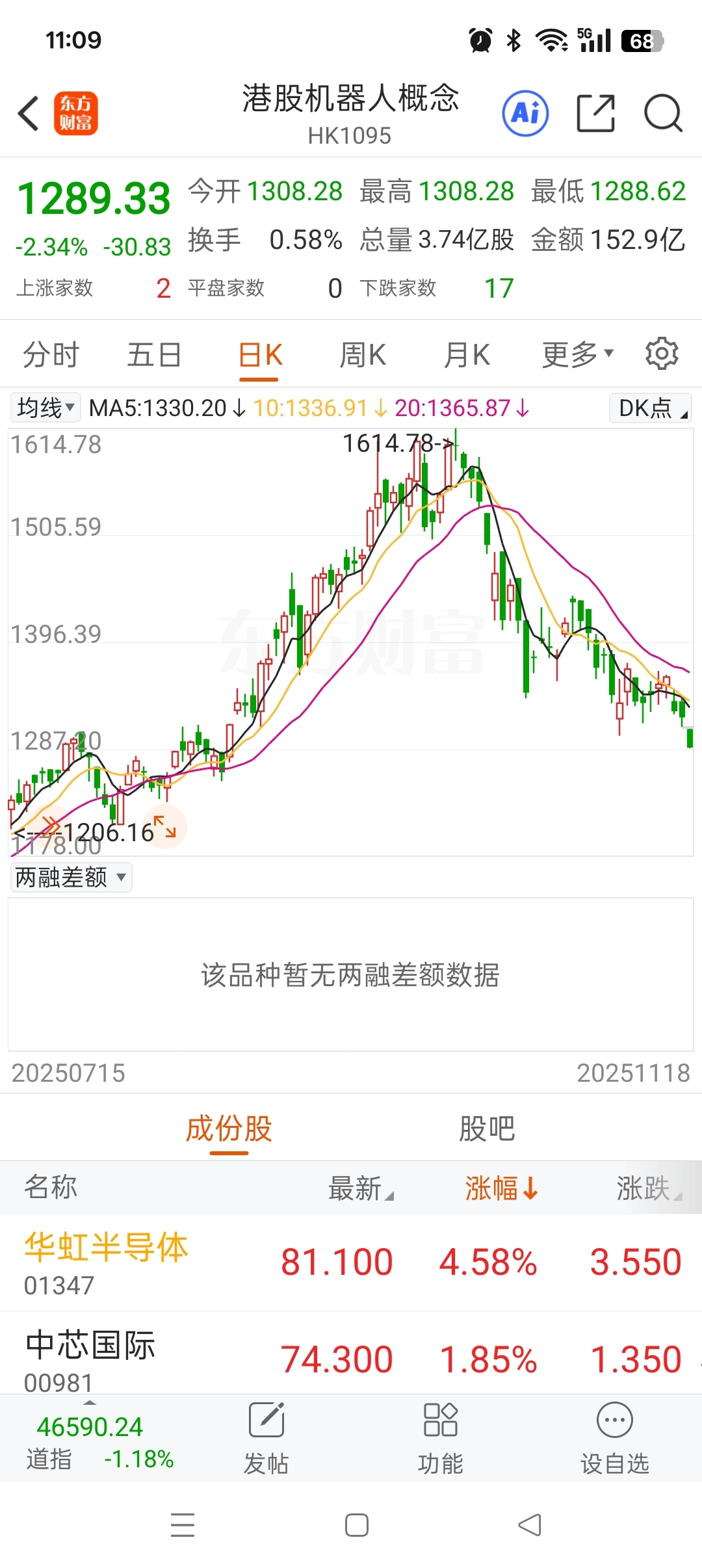 $首程控股(HK|00697)$ 指数一直跌,不知道什么时候是尽头,昨天卖了的今早卖的现在高兴啦