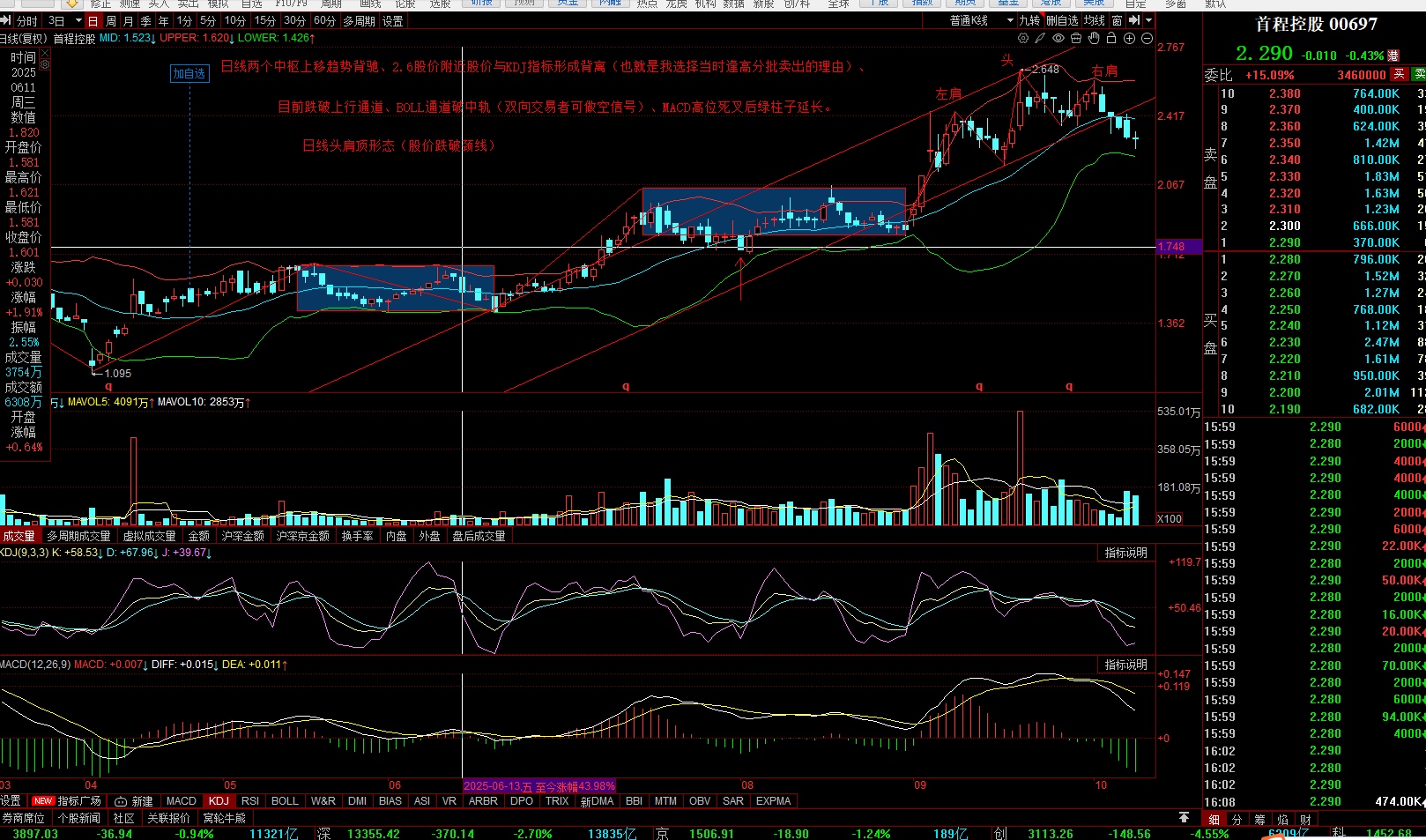$首程控股(HK|00697)$ 用技术形态分析首程目前股价位置贴四张图直观一点。基本面我与你们一样了解这里就不重复了,资本市场里没有馅饼可以捡,大家所了解的都会反应在股价上。为何我长期看好短期看空呢,实则是市场告诉我的,第一,一个日线头肩顶如果还不能引起市场的警觉吗?第二大股东清仓式减持在短期最高位,这两点注定压倒短期股价,回看年涨幅,港股a股机器人板块估值与股价历史位置,机器人元年也就是开始,这个涨幅已经笑傲市场了。还妄图如何再上涨,今天的回购实则是利好目前还持有的大家,实则回购是什么,股价向上的时候需要回购吗,哪个热门上涨股票是靠回购打上去的,回购更透露出多空市场空头已经占据主导地位。一个日线两中枢上涨趋势的结束,接下来是更大级别的盘整或者下跌,对于多头来说时间与金钱不成正比了。就像我说的,卖出不是代表做空,只是为了后面更有利位置的买入,与市场共舞才能让盈利奔跑。