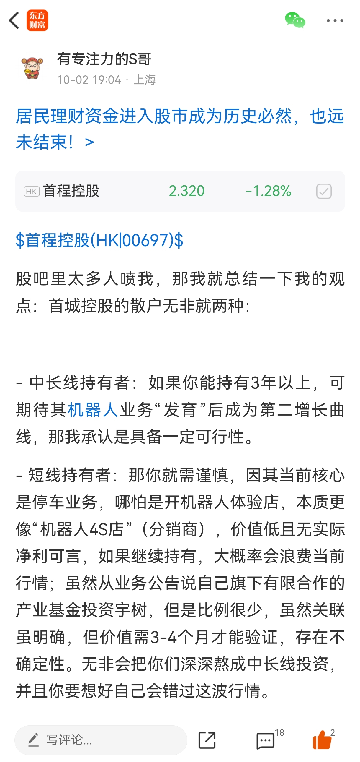 $首程控股(HK|00697)$ 当现实摆在面前,一切都安静了