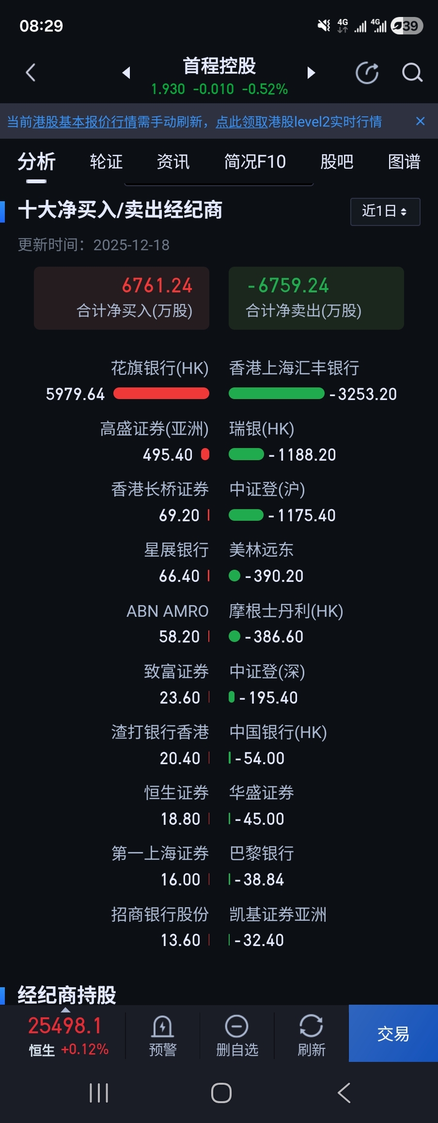 $首程控股(HK|00697)$ 昨天让外资给抄底了