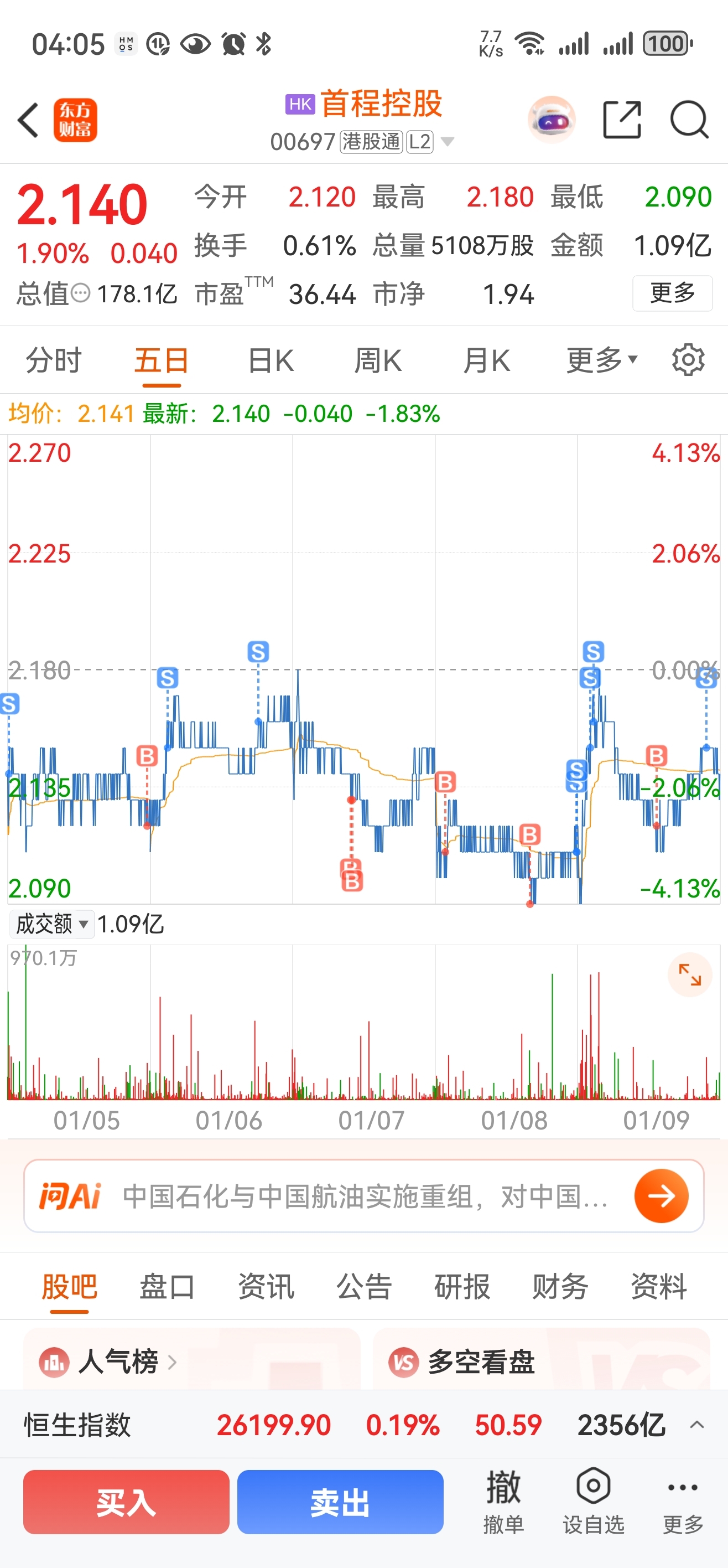 $首程控股(HK|00697)$ 每天做T,就是横盘,机器人涨他也不涨,周一看下跌